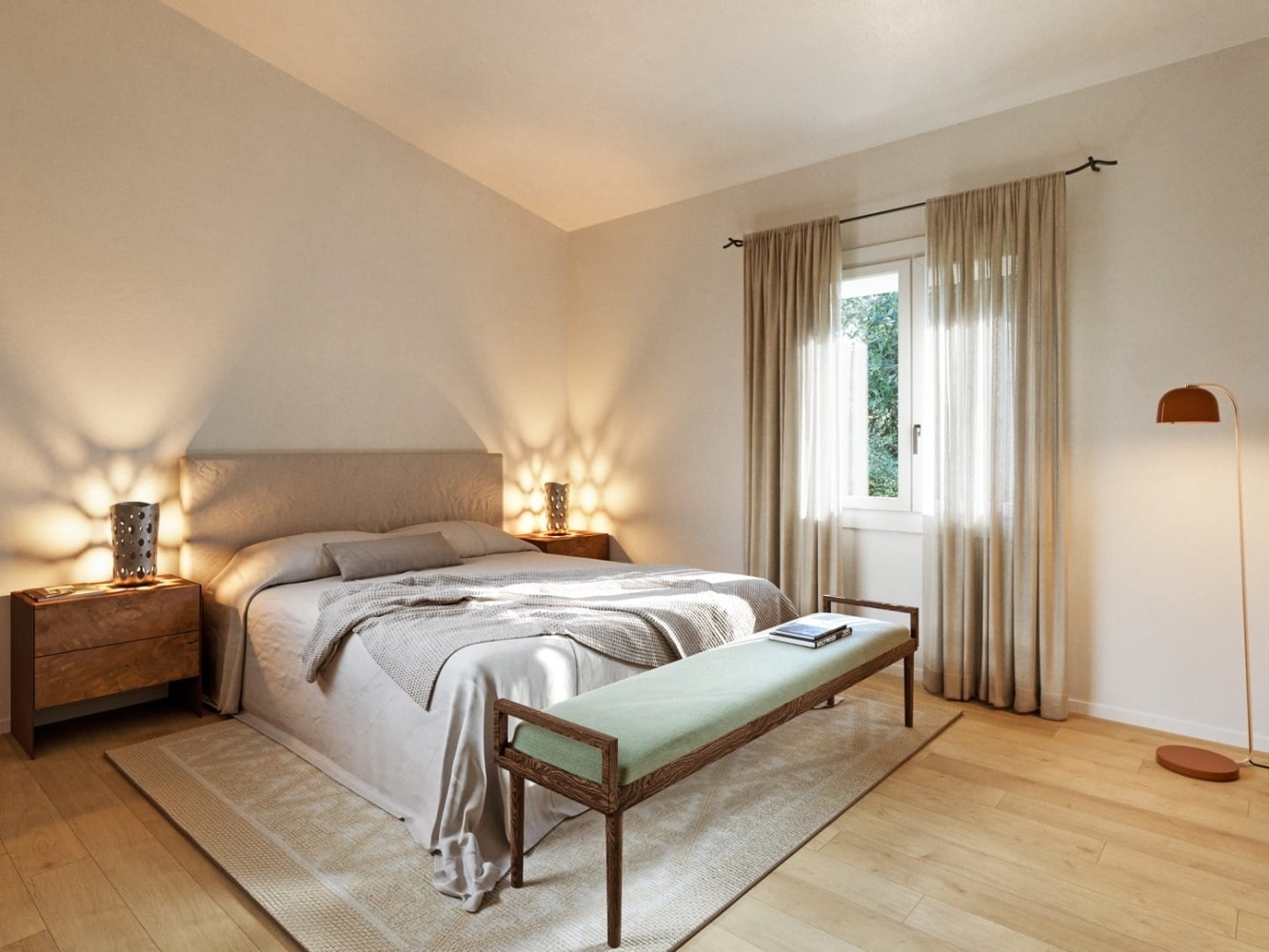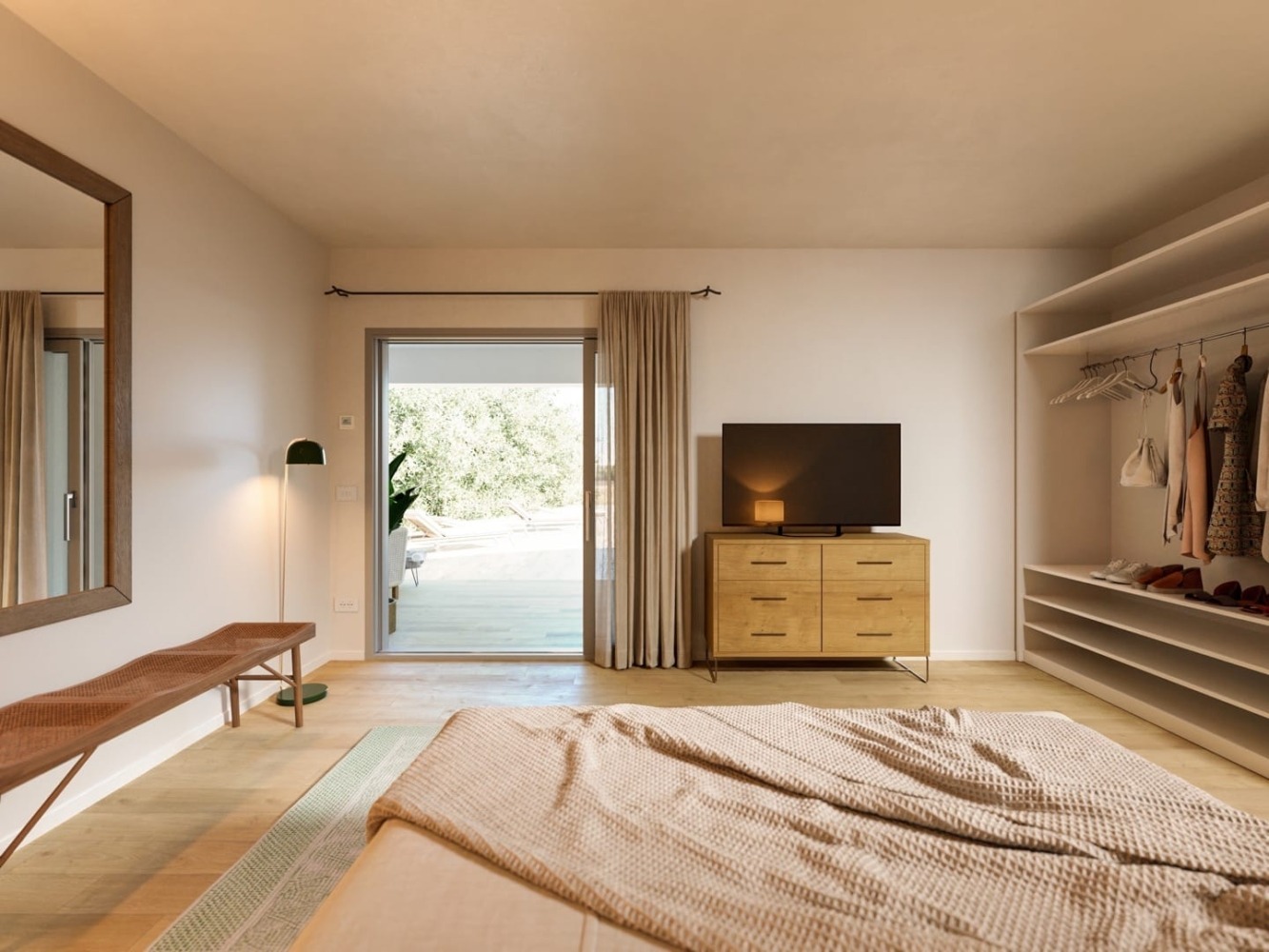 Willa o powierzchni 180 m² składająca się z dwóch sypialni dwuosobowych, obie wyposażone w łóżka typu king-size, garderoby oraz prywatne łazienki z podwójnym prysznicem. Oddzielna strefa dzienna wychodzi na prywatny zielony ogród oraz elegancką werandę z podgrzewanym basenem oraz strefą solarium. To jasna, minimalistycznie i nowocześnie urządzona przestrzeń.