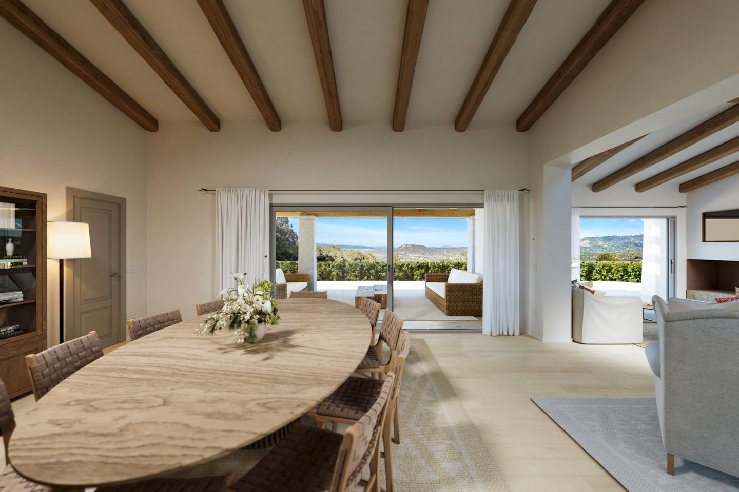 Willa o powierzchni 105 m² z zielonym, obszernym ogrodem rozciągającym się na kolejne 500 m²! Znajdują się tutaj dwie sypialnie dwuosobowe z łóżkami king-size, obie sypialnie wyposażone są w prywatne łazienki oraz obszerne garderoby, a z obu pomieszczeń roztacza się niesamowity widok na szmaragdowe morze Sardynii, podgrzewany basen oraz werandę.