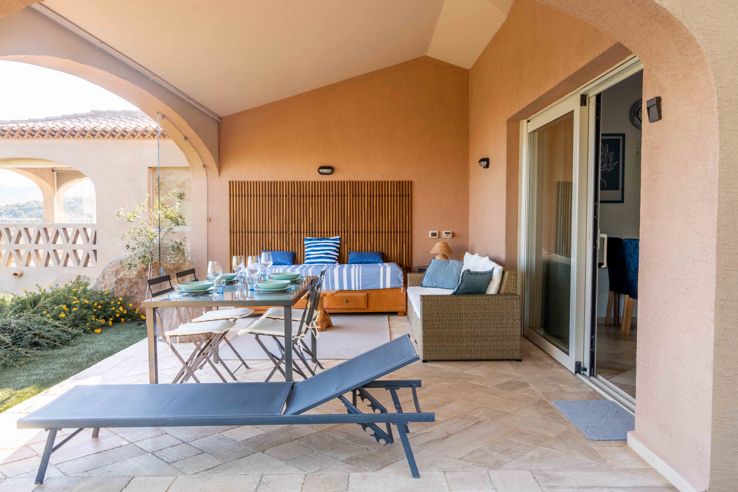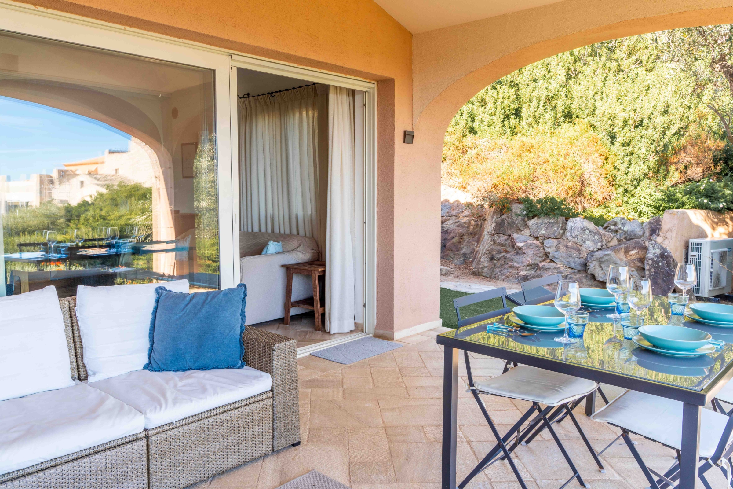 Apartament zlokalizowany jest na terenie ekskluzywnego, zamkniętego osiedla w pobliżu miasteczka Golfo Arancii, które jest idealne na sardyńskie wakacje. Znajdziecie tu wiele lokali i restauracji, port, z którego wyruszają wycieczki morskie podczas których można spotkać delfiny. Z miasteczka jest bardzo blisko do najpiękniejszych miejsc i atrakcji turystycznych północnego wybrzeża – strategiczna lokalizacja i świetne zaplecze turystyczne to przepis na udane wakacje.