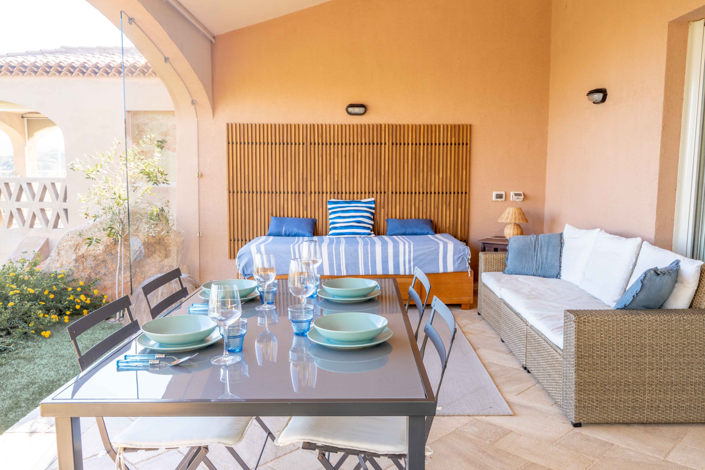 Apartament Azzurra położony jedynie 700 m do cudownych piaszczystych plaż Spiaggia Bianca, czyli White Beach oraz Cala Sassari z niezwykłym widokiem na wyspy Tavolara i Molara. Apartament znajduje się na terenie rezydencji z dostępem do wspólnego basenu, posiada umeblowaną i zadaszoną werandę. Lokalizacja Golfo Aranci przy Costa Smeralda jest pozycją strategiczną do zwiedzania wyspy.