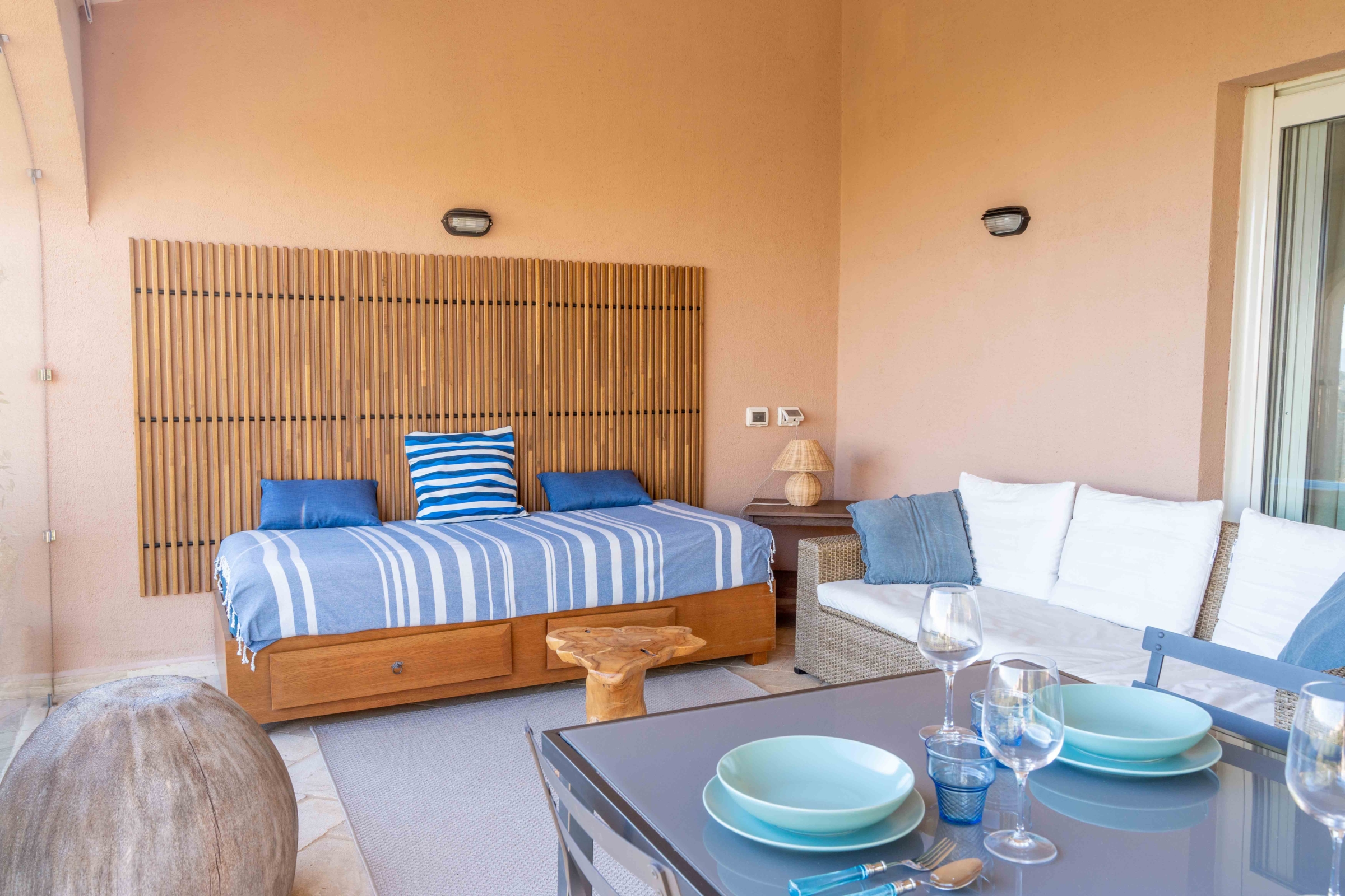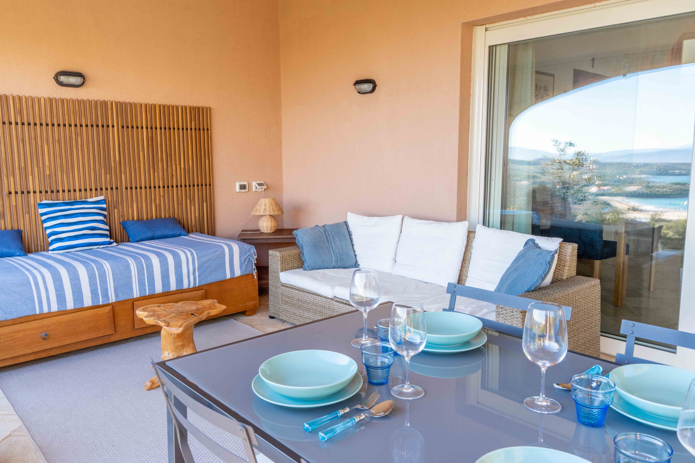 - umeblowana weranda, widok na morze