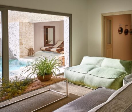 Eco Retreat oferuje piękne, nowoczesne i niezależne apartamenty typu suite. Każdy posiada sypialnię, część wypoczynkową, zewnętrzną umeblowaną werandę, prywatny basen i ogród z zachwycającymi widokami – wszystko, czego potrzebujesz do niezakłóconego spokoju. Wykorzystane zostały tu tylko naturalne materiały, jak dąb, korek, jasny kamień, dywany z lnu. Każdy apartament wyposażony jest w klimatyzację, sejf, mini barek, tv, zestaw do kawy i herbaty, czajnik, prywatne wejście.