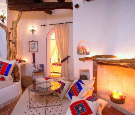 40-45 m², dla 3 osób. Dwa suites, które wyróżniają się wiejskim wystrojem przypominającym sztukę Barbagii: orbace, skóra i wełna, tradycyjne sardyńskie tkaniny, w połączeniu z dekoracjami w drewnie, wyrzeźbionymi przez lokalnych stolarzy. Oferują wannę i łóżko na zewnątrz.