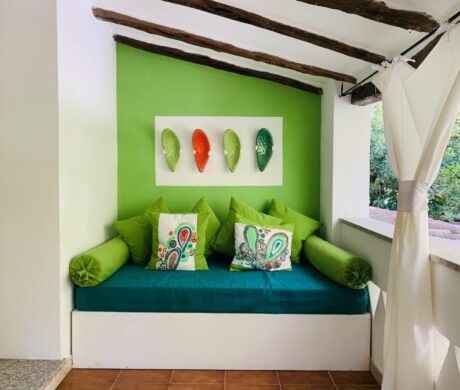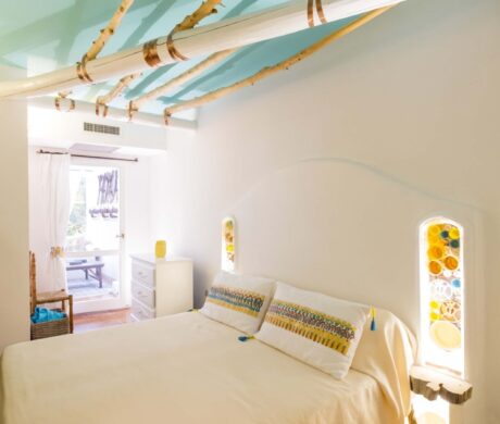 25-30 m², dla 4 osób. Suites poświęcone artystom z Sardynii XX wieku. Pokoje wyposażone są w tradycyjne meble, oryginalne dzieła projektantów, książki o sztuce i cenne hafty stworzone przez zręczne ręce kobiet z Olieny. Niektóre mają okrągłą wannę dla 2 osób w małej części wypoczynkowej lub na tarasie.