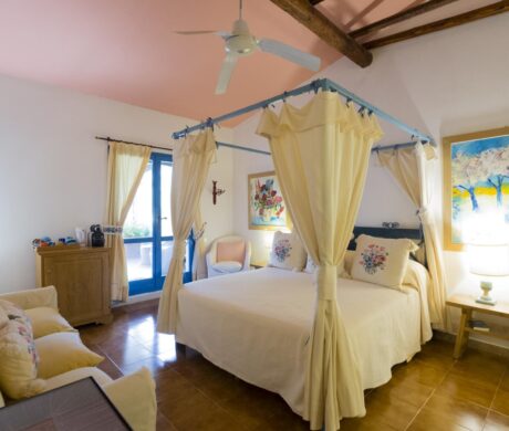 25-30 m², dla 2 osób. Suites poświęcone artystom z Sardynii XX wieku. Pokoje wyposażone są w tradycyjne meble, oryginalne dzieła projektantów, książki o sztuce i cenne hafty stworzone przez zręczne ręce kobiet z Olieny. Niektóre mają okrągłą wannę dla 2 osób w małej części wypoczynkowej lub na tarasie.