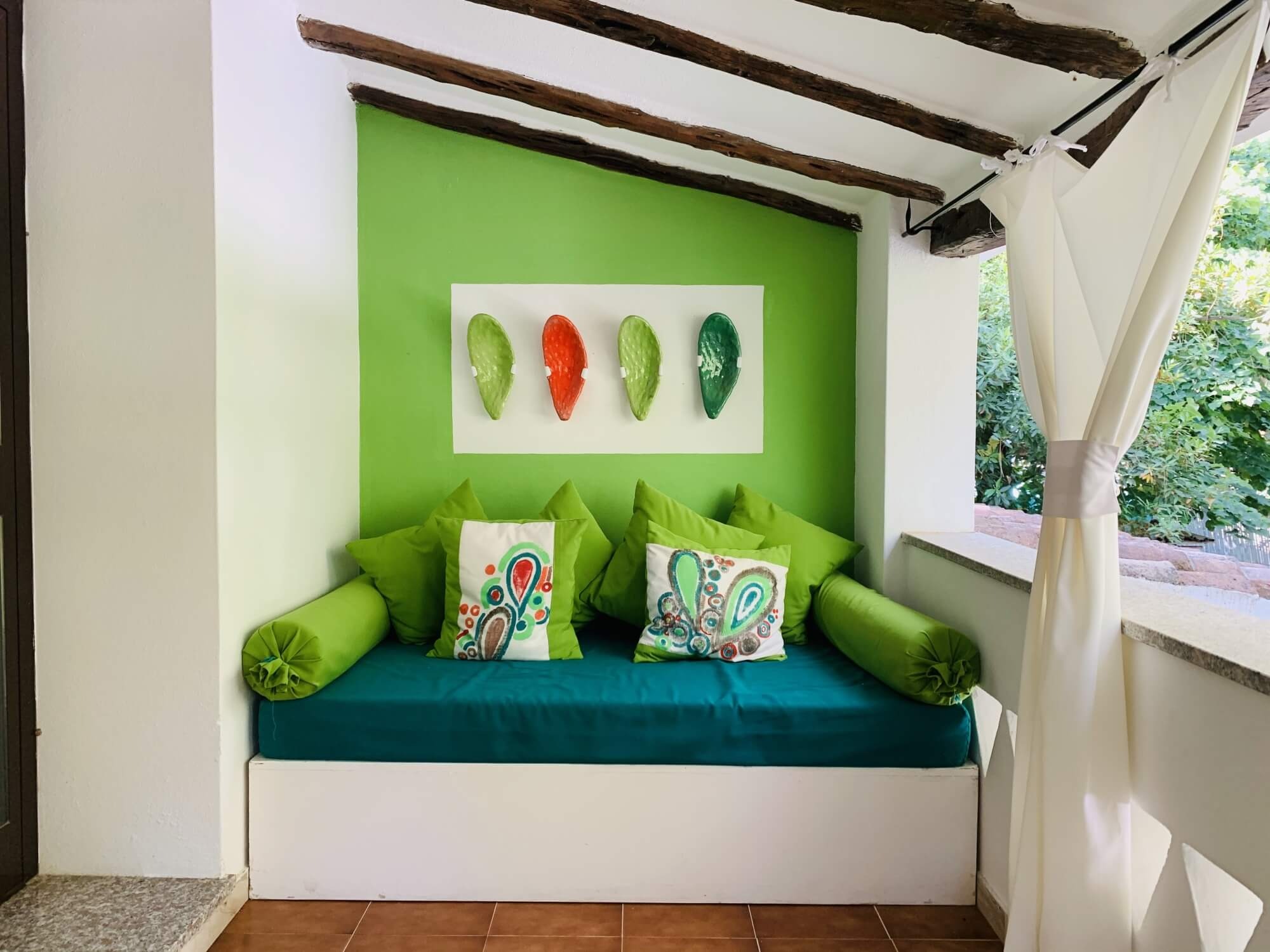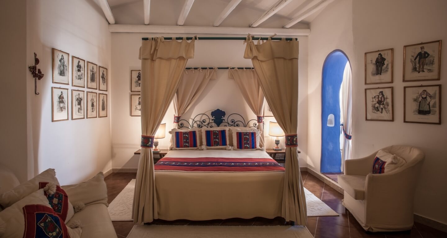 25-30 m², dla 2 osób. Suites poświęcone artystom z Sardynii XX wieku. Pokoje wyposażone są w tradycyjne meble, oryginalne dzieła projektantów, książki o sztuce i cenne hafty stworzone przez zręczne ręce kobiet z Olieny. Niektóre mają okrągłą wannę dla 2 osób w małej części wypoczynkowej lub na tarasie.