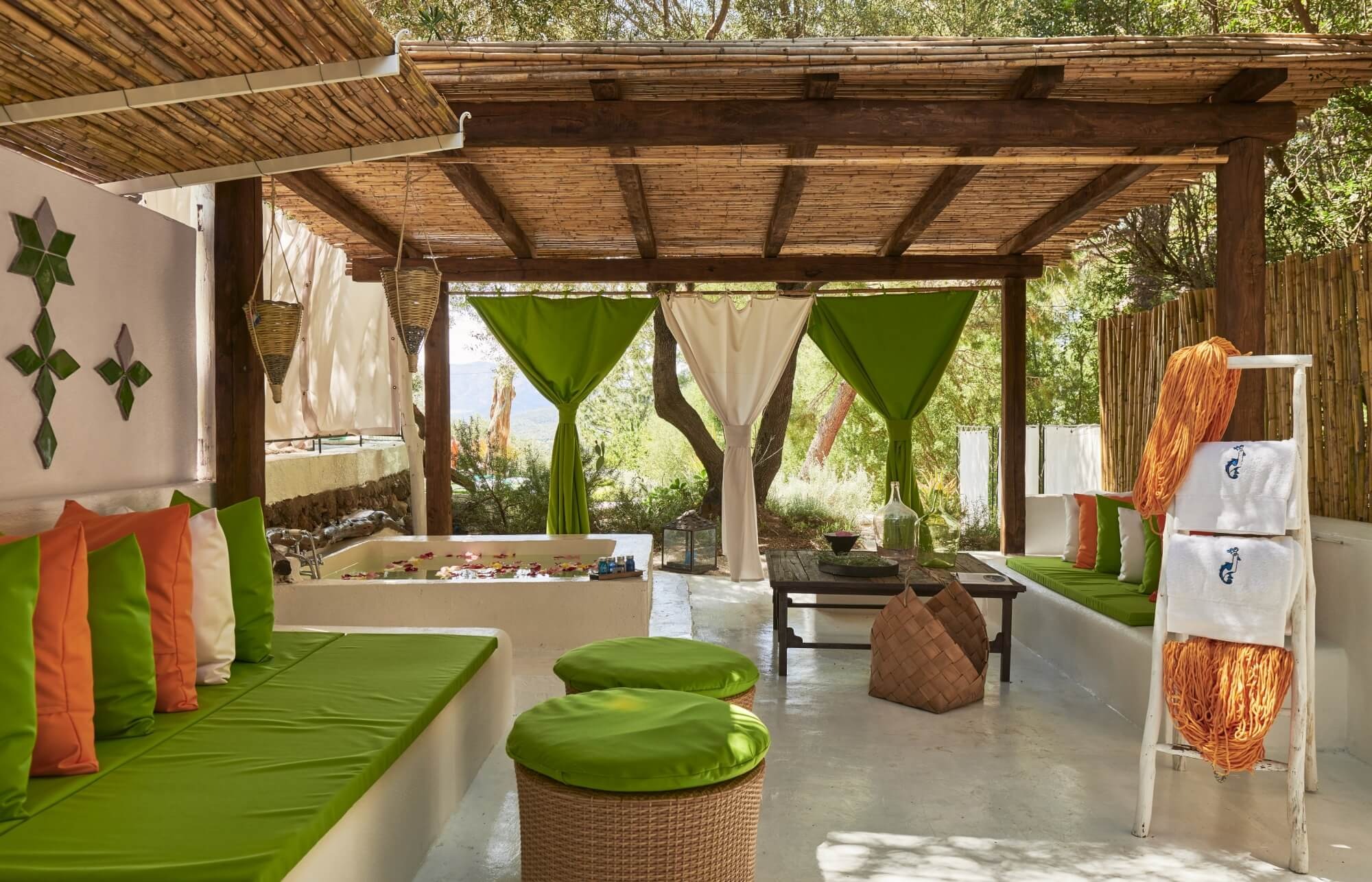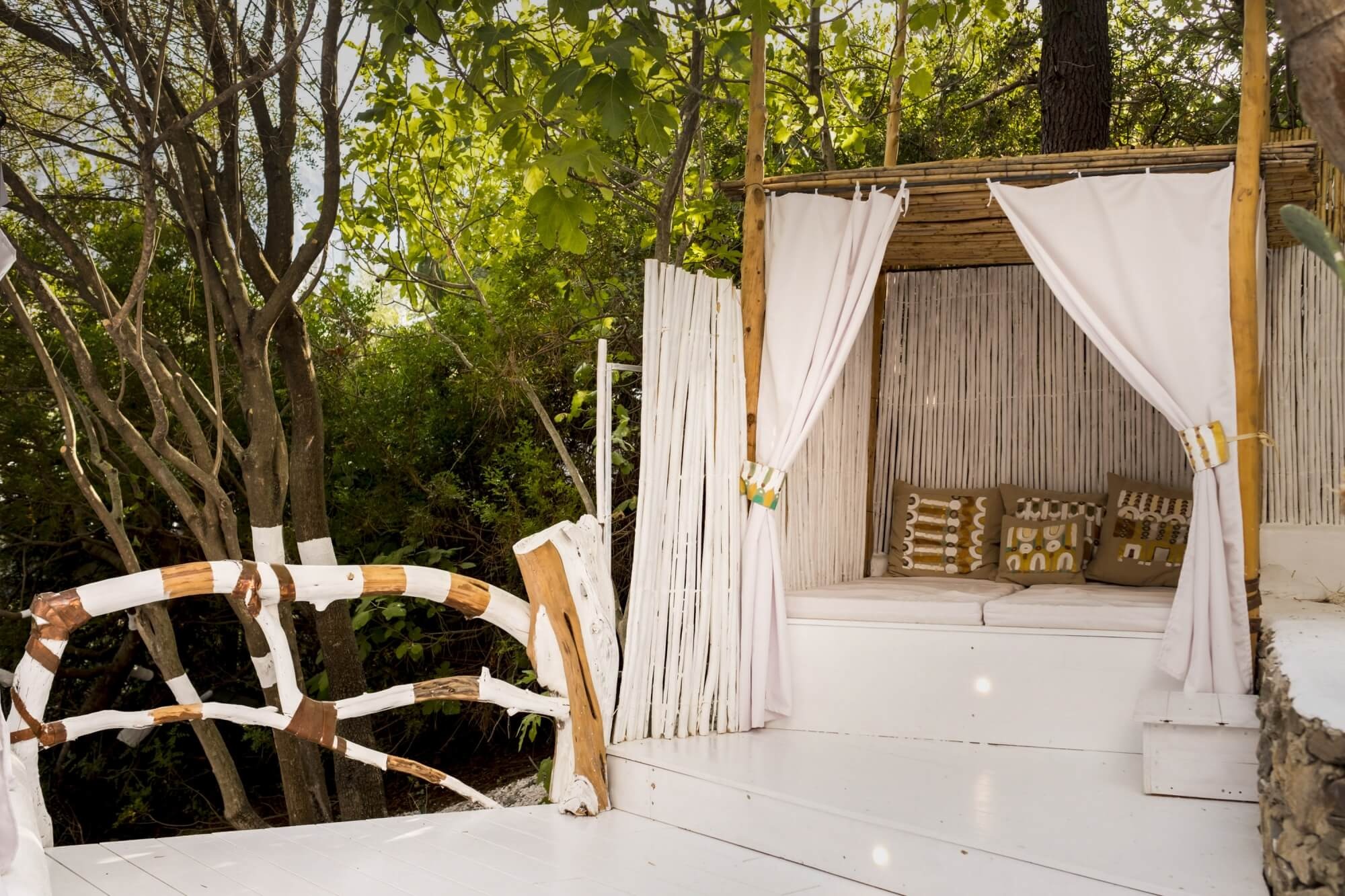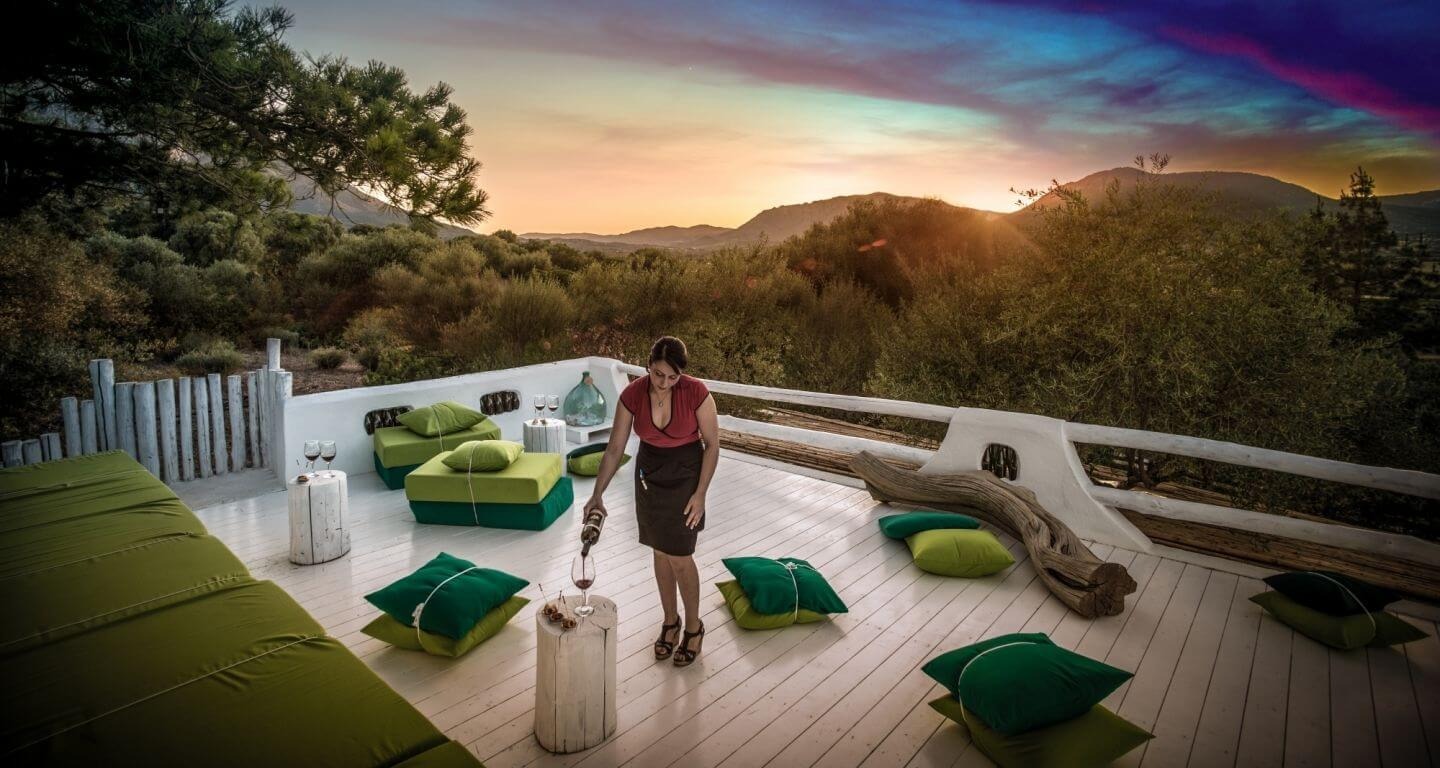 Zachwycające, wręcz magiczne miejsce. Wśród drzew i naturalnych zapachów sardyńskiej przyrody. Jałowcowe stoły i krzesła, lniane obrusy, kolorowe poduszki, delikatne światełka oraz kulinarny festiwal lokalnych smaków.