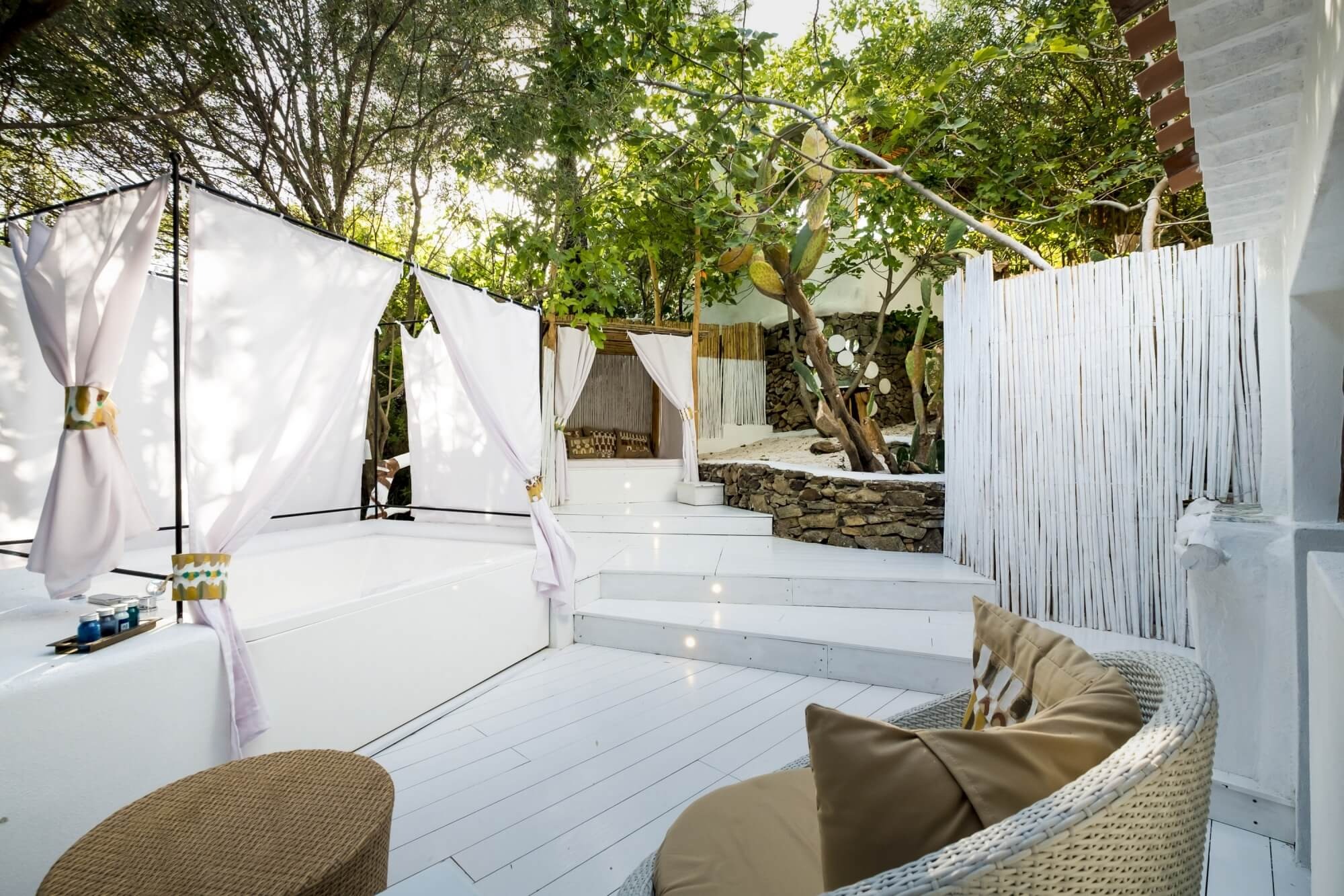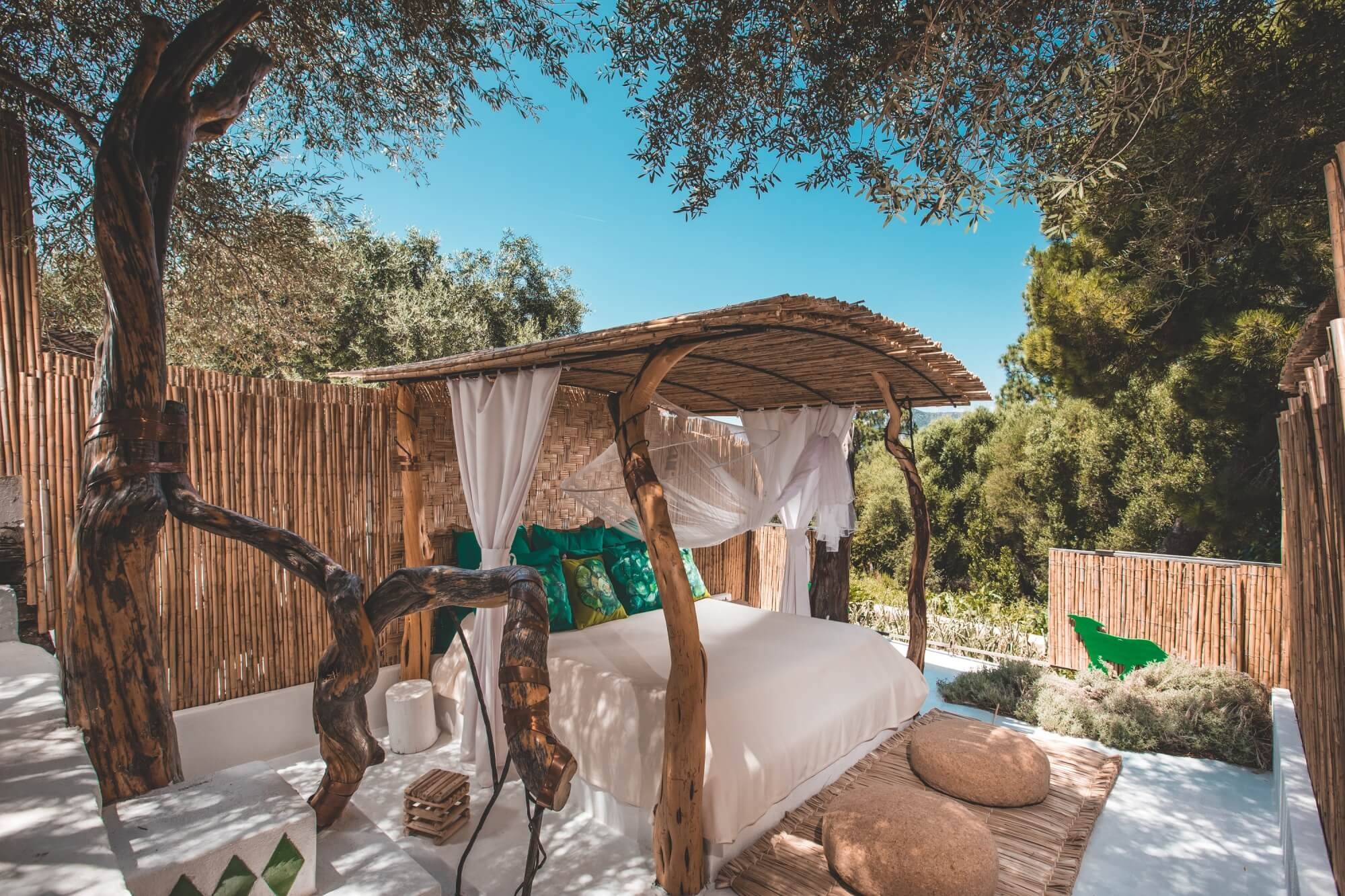 40-45 m², dla 3 osób. Dwa suites, które wyróżniają się wiejskim wystrojem przypominającym sztukę Barbagii: orbace, skóra i wełna, tradycyjne sardyńskie tkaniny, w połączeniu z dekoracjami w drewnie, wyrzeźbionymi przez lokalnych stolarzy. Oferują wannę i łóżko na zewnątrz.