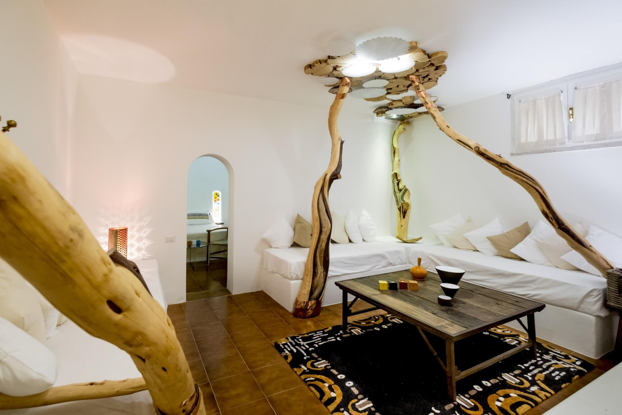25-30 m², dla 4 osób. Suites poświęcone artystom z Sardynii XX wieku. Pokoje wyposażone są w tradycyjne meble, oryginalne dzieła projektantów, książki o sztuce i cenne hafty stworzone przez zręczne ręce kobiet z Olieny. Niektóre mają okrągłą wannę dla 2 osób w małej części wypoczynkowej lub na tarasie.