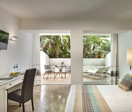 Pokoje typu twin lub pokoje dwuosobowe z widokiem na wewnętrzny ogród charakteryzują się kameralną i komfortową atmosferą. Usytuowane na pierwszym i drugim piętrze hotelu, są wyposażone w prywatne patio z widokiem na śródziemnomorskie bouganville hotelowego ogrodu. Przeznaczone dla 2 osób.