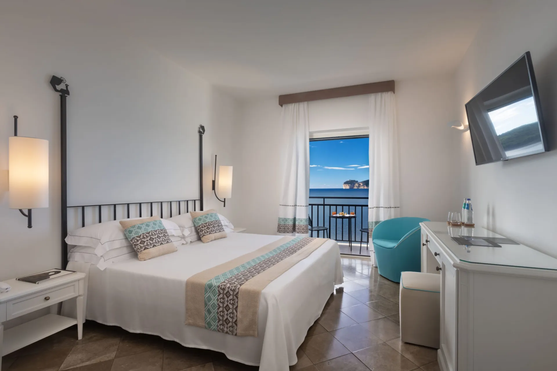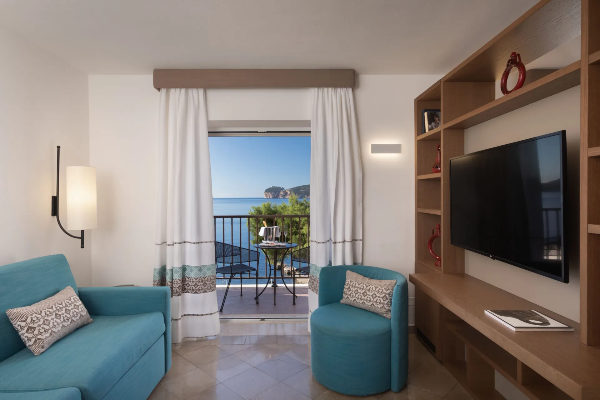 Położony na najwyższym poziomie hotelu z dedykowaną windą, zarezerwowaną tylko dla gości Premier Deluxe, oferuje absolutne odosobnienie, wyrafinowane otoczenie i wyjątkowy komfort. Posiada łóżko typu king-size z widokiem na wspaniałą werandę. Taras oferuje zapierający dech w piersiach widok na zatokę Capo Caccia. Goście mogą korzystać z zacienionego miejsca do spożywania posiłków na świeżym powietrzu oraz przestronnego salonu do opalania. Przeznaczony dla 2 osób.