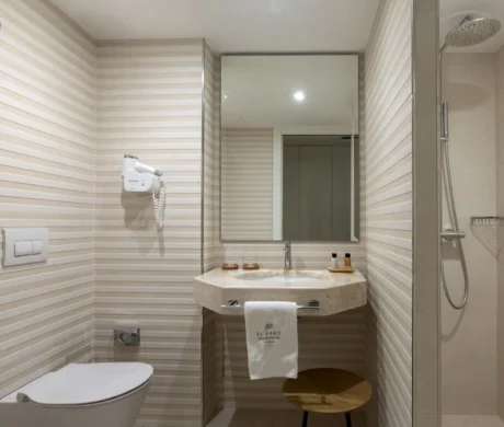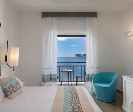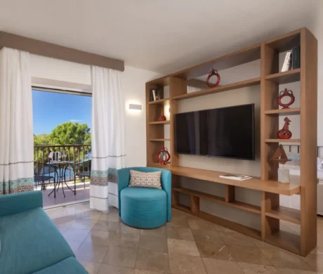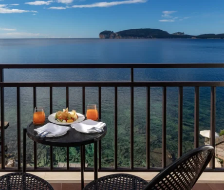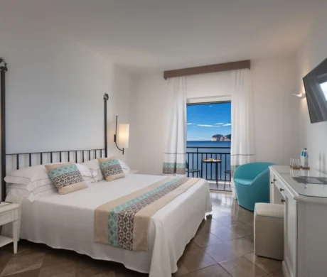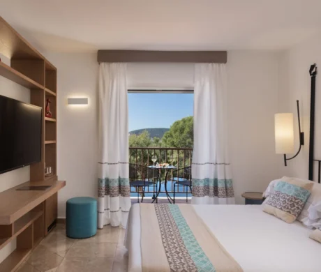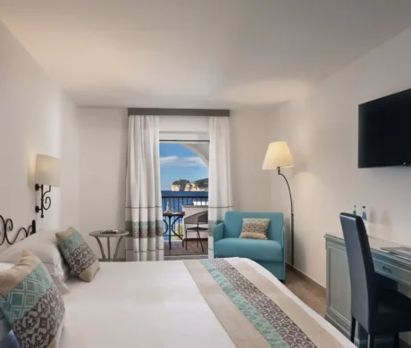 Pokoje typu twin lub pokoje dwuosobowe są wyposażone w prywatny balkon ze spektakularnym widokiem na zatokę. Pokoje te oferują komfortowy pobyt, emanując już od wejścia wszystkimi śródziemnomorskimi cechami, które oferuje ta wyjątkowa lokalizacja nad morzem. Przeznaczony dla 2 osób, możliwość dostawienia łóżeczka dziecięcego.