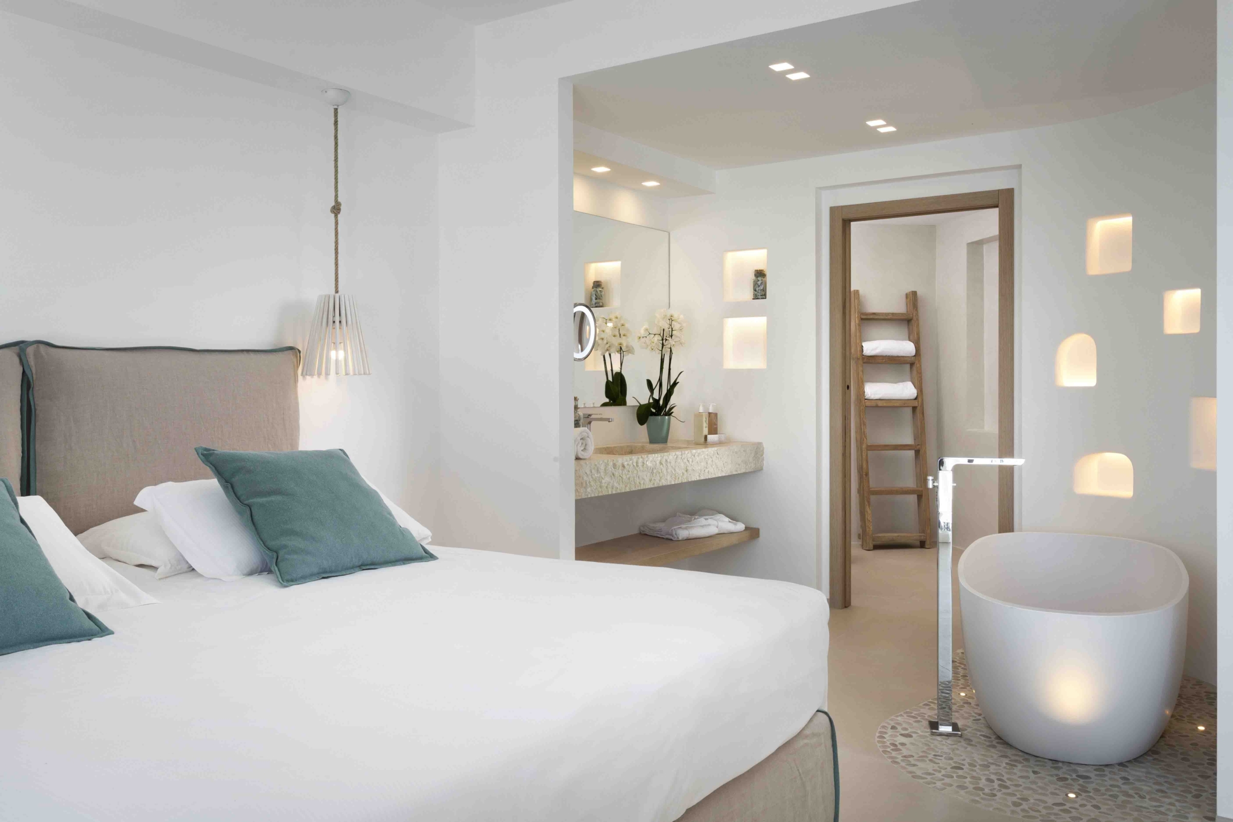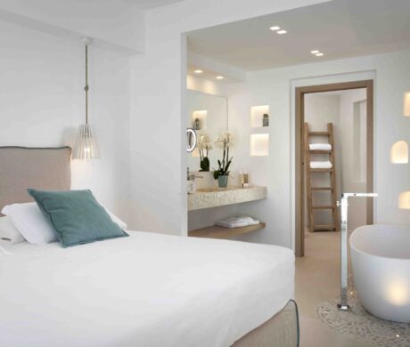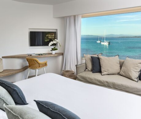 Znajdujący się na drugim piętrze głównego budynku, Cala Greca Junior Suite to pokój, który jest wyrazem nowego poziomu komfortu, designu i piękna. Oferuje wspaniały widok na otwarte morze i szmaragdową lagunę prywatnej plaży.
