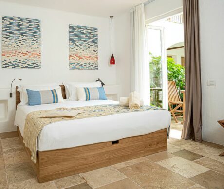 Przestronny suite położony na pierwszym piętrze z prywatnym wejściem i tarasem z widokiem na basen. Wyposażony w: klimatyzacja, prywatna łazienka, tv, minibarek, sejf, szlafrok, pantofle, suszarka, czajnik.
