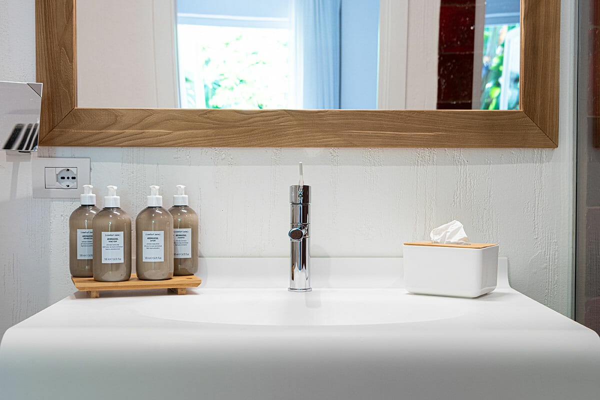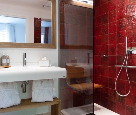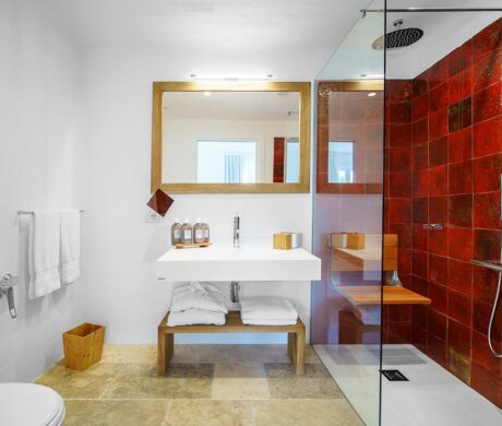Przestronny suite na pierwszym piętrze z niezależnym wejściem i dużym, elegancko urządzonym tarasem. Wyposażony w: klimatyzacja, prywatna łazienka, tv, minibarek, sejf, szlafrok, pantofle, suszarka, czajnik.