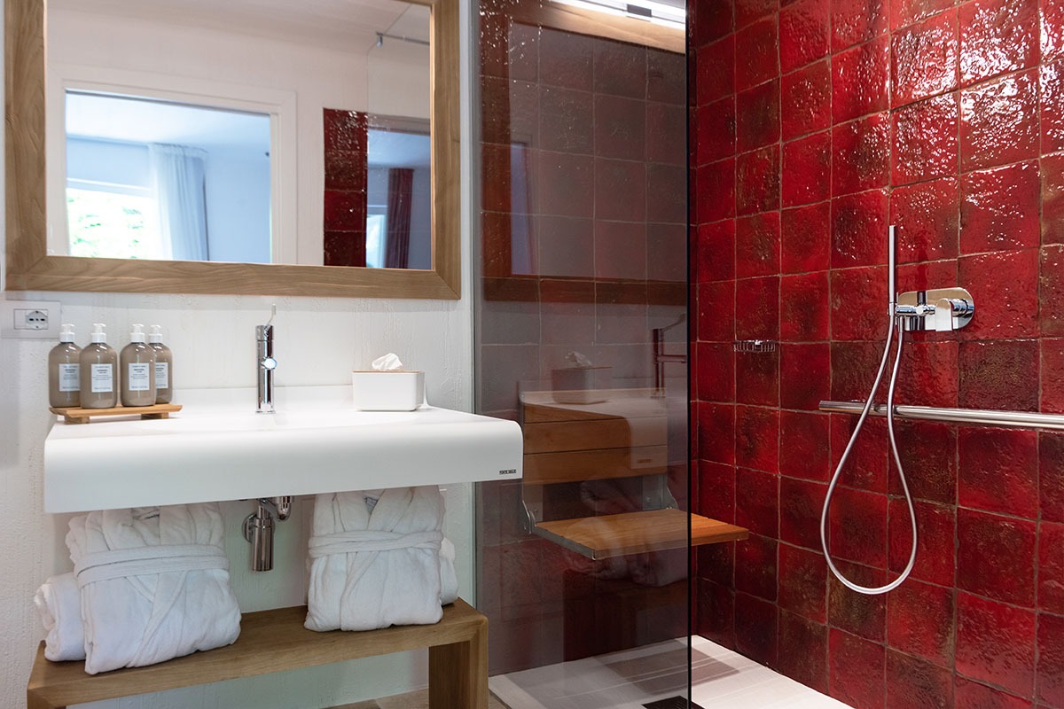 Znajduje się na pierwszym piętrze i oferuje duży elegancko urządzony taras z widokiem na basen. Wyposażony w: klimatyzacja, prywatna łazienka, tv, minibarek, sejf, szlafrok, pantofle, suszarka, czajnik.