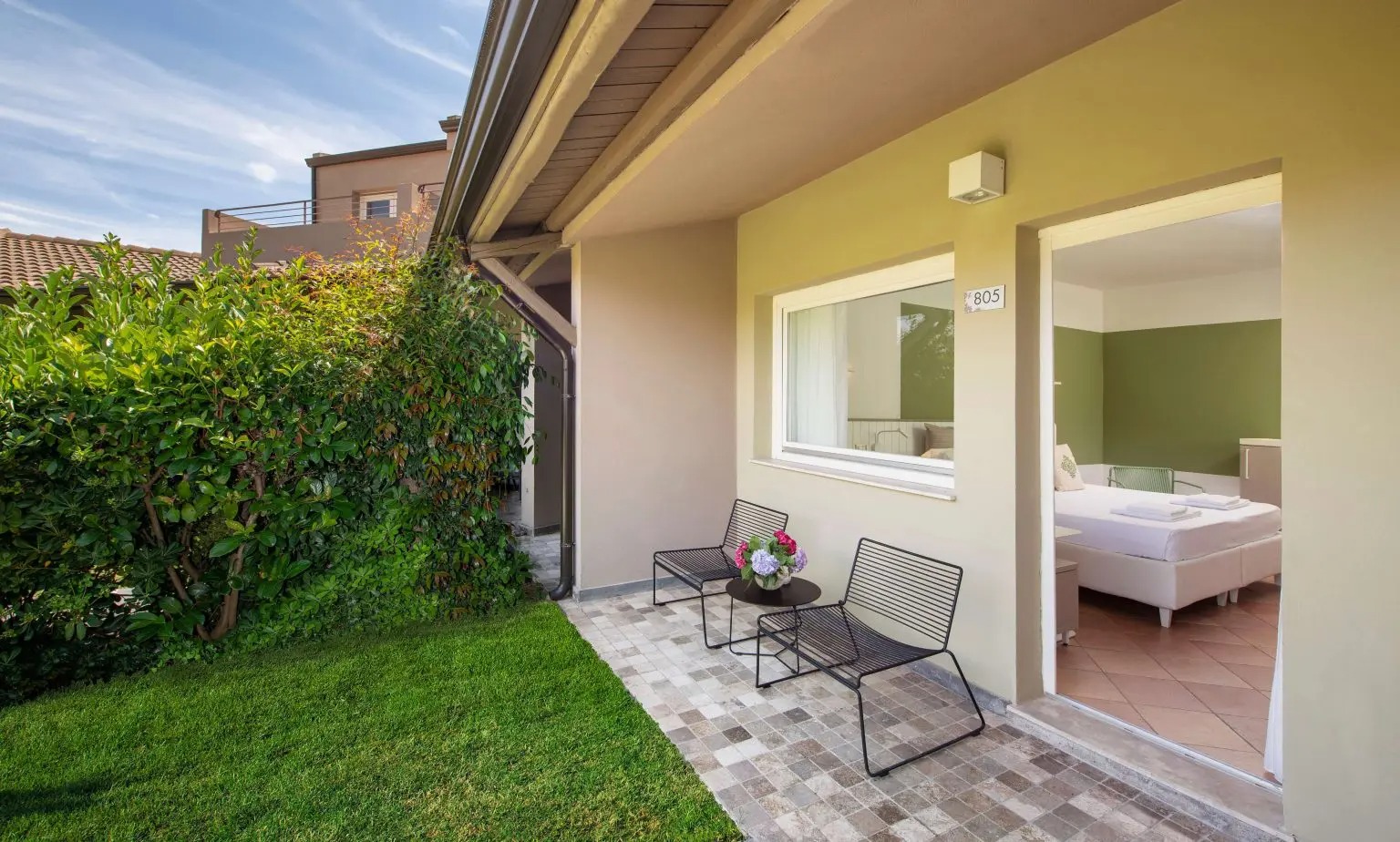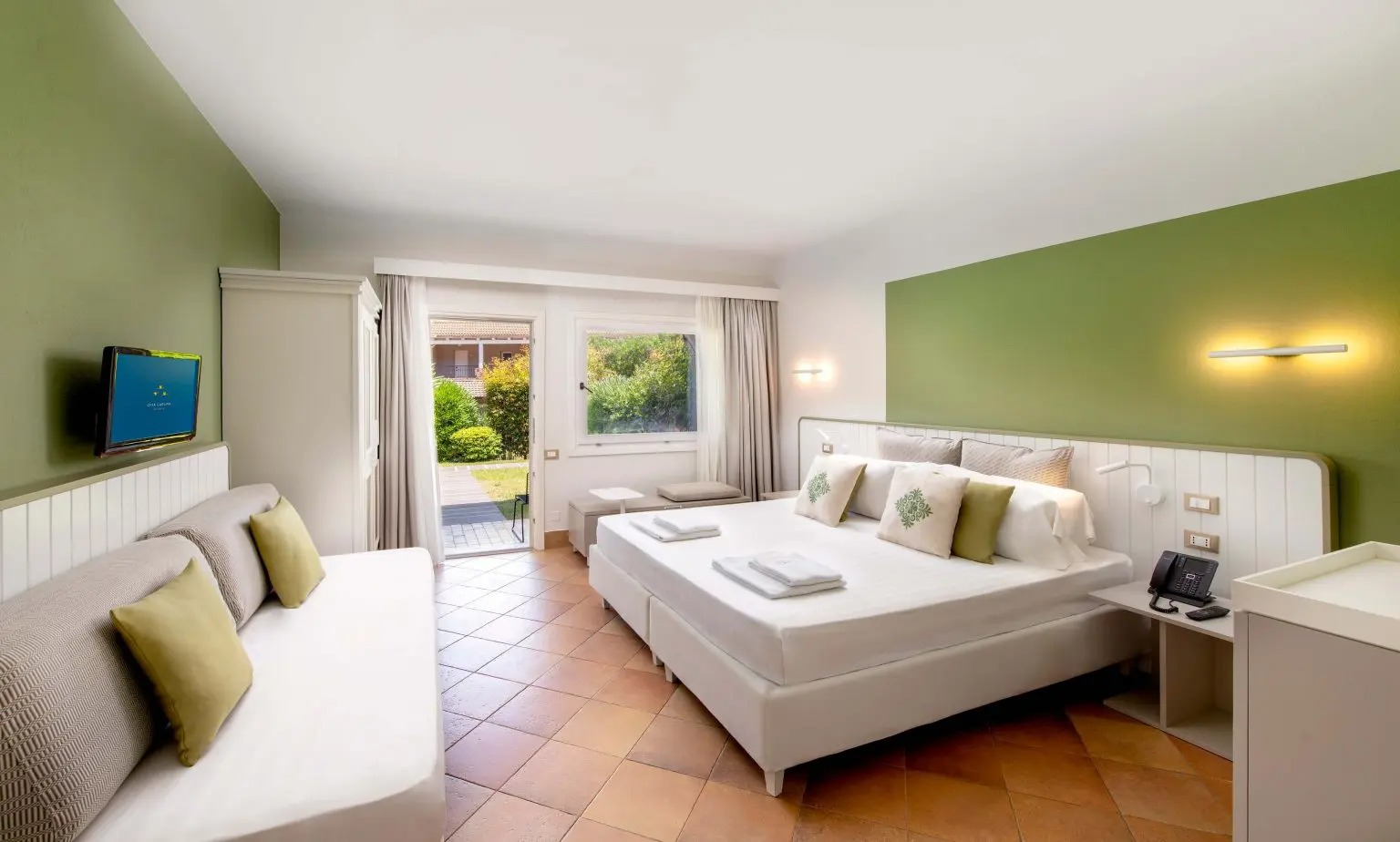 Pokoje o powierzchni 25 m² znajdują się wokół centralnego basenu, w pobliżu baru przy basenie i restauracji Mezze, w pobliżu głównych usług kurortu i Piazza degli Ulivi. Mają ogródek otoczony murkiem, łóżko typu king-size oraz możliwość dodania łóżeczka dziecięcego lub pokoju połączonego (na życzenie i w zależności od dostępności).
