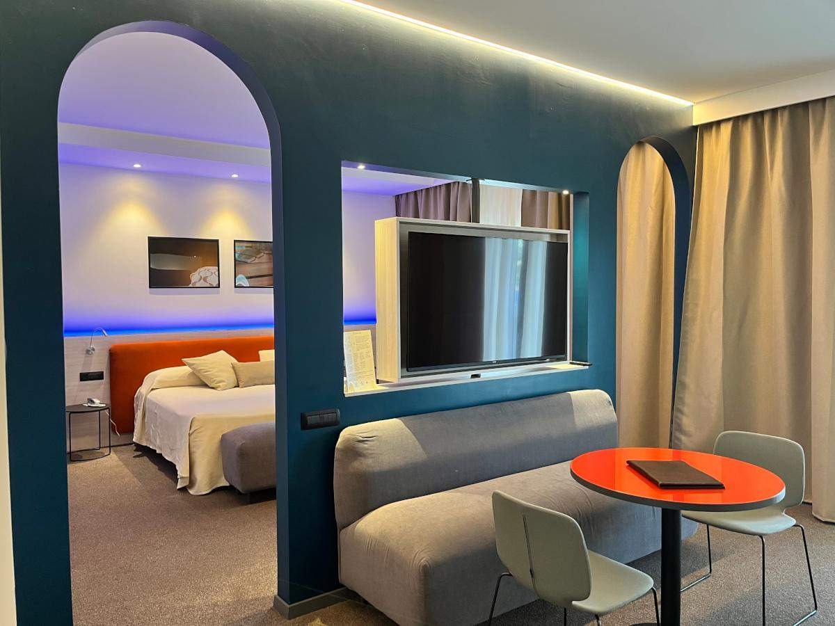 Odnowione i doskonale wyposażone apartamenty typu Junior Suite z łóżkiem małżeńskim zostały zaprojektowane tak, aby zapewnić gościom komfort i dobre samopoczucie już od momentu przybycia do hotelu. Posiadają one przestronny balkon z widokiem na baseny, wyposażony w kącik wypoczynkowy i leżaki. W łazience znajduje się wanna i prysznic.
