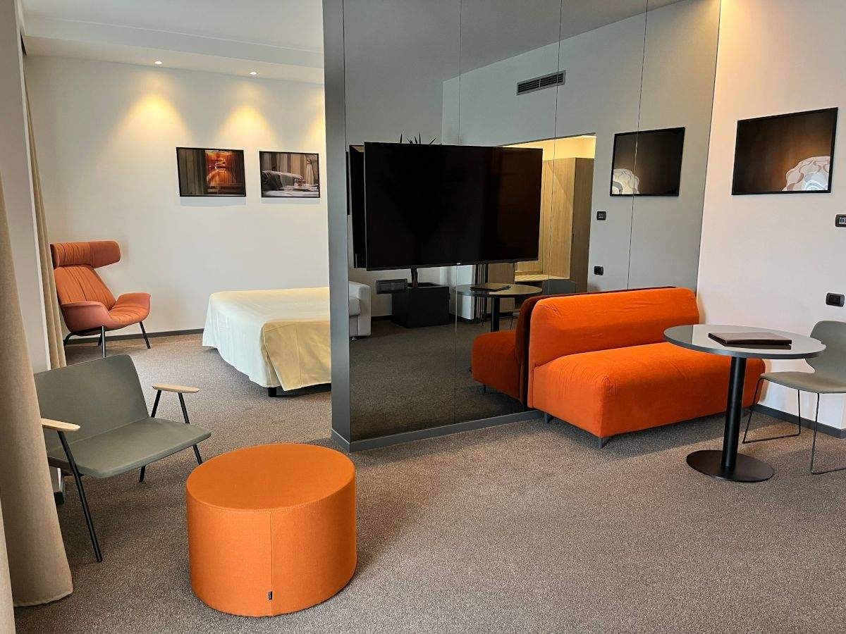 Apartamenty suite składają się z dwóch pomieszczeń: salon z rozkładaną sofą i sypialnię z łóżkiem typu king size. Apartament oferuje urządzony balkon z widokiem na zielone otoczenie. W łazience znajduje się wanna, prysznic i podwójna umywalka.