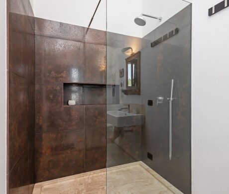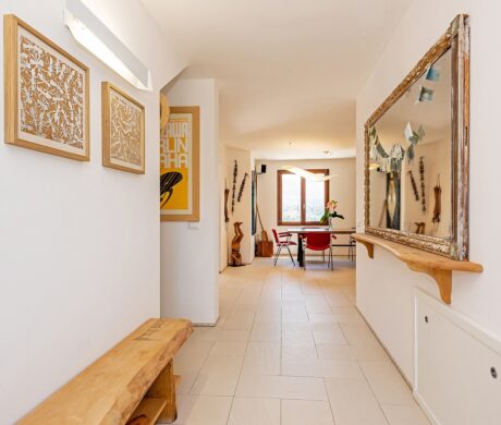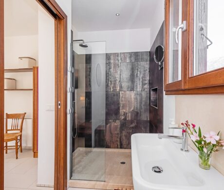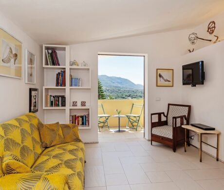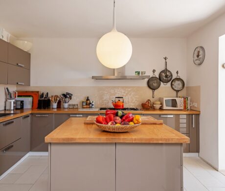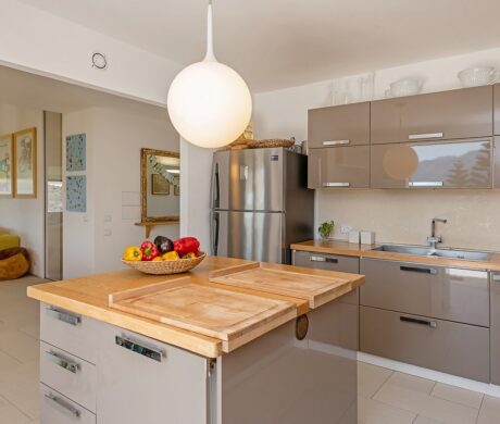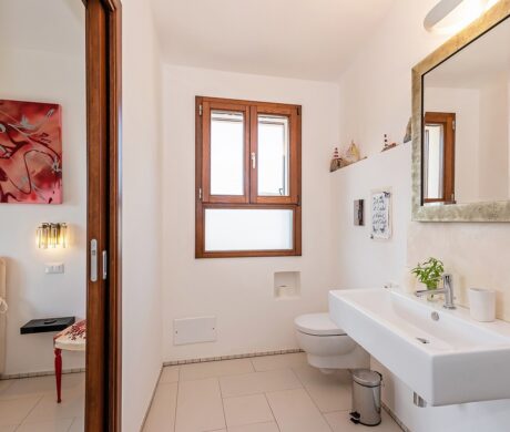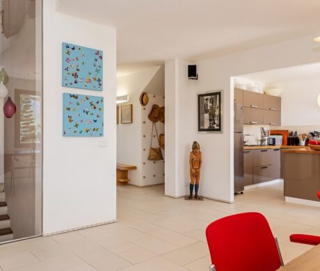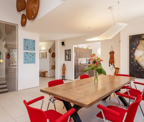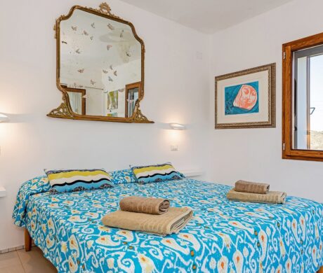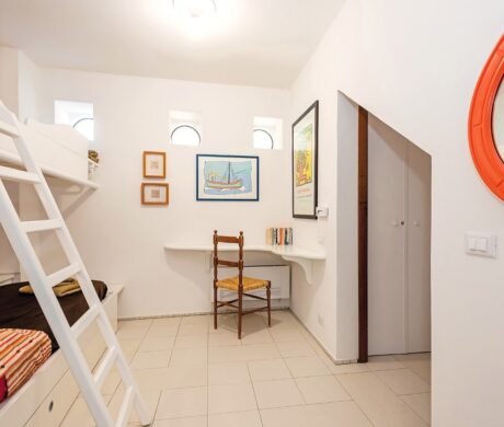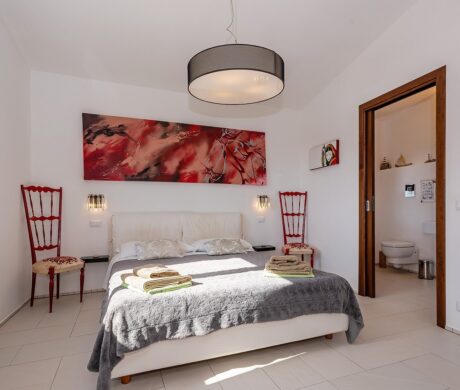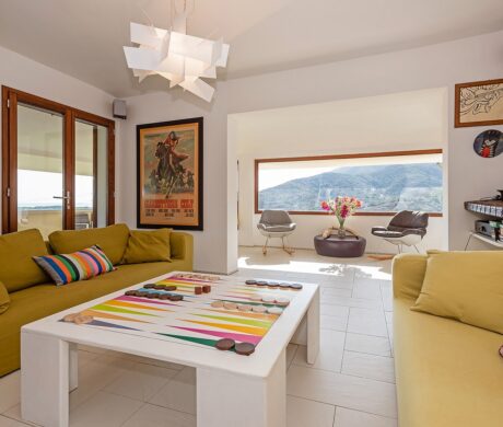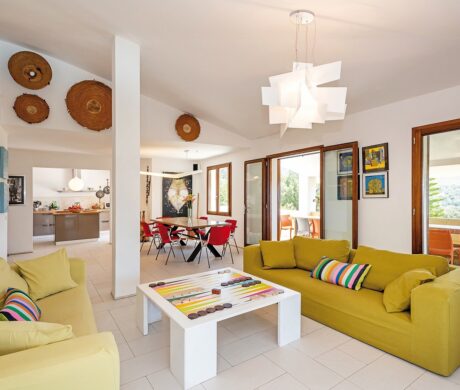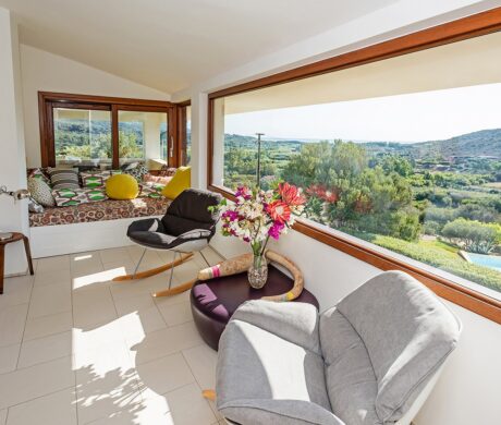 Willa Aurata to imponująca, wielopoziomowa willa położona pośród zielonych wzgórz Costa Verde, zaledwie 1,5 km od szerokiej, piaszczystej plaży Portixeddu. Idealne dla dużych rodzin lub grup przyjaciół. Wnętrze willi urządzone jest w stylu nieformalnej elegancji, tworząc przytulną i swobodną atmosferę. Główna część dzienna obejmuje przestronny salon z jadalnią oraz przeszkloną werandę z widokiem na morze i okoliczne wzgórza. Z salonu oraz kuchni prowadzą podwójne drzwi na taras, na którym znajduje się długi stół jadalny mogący pomieścić wszystkich gości. Kuchnia jest nowoczesna, w pełni wyposażona.