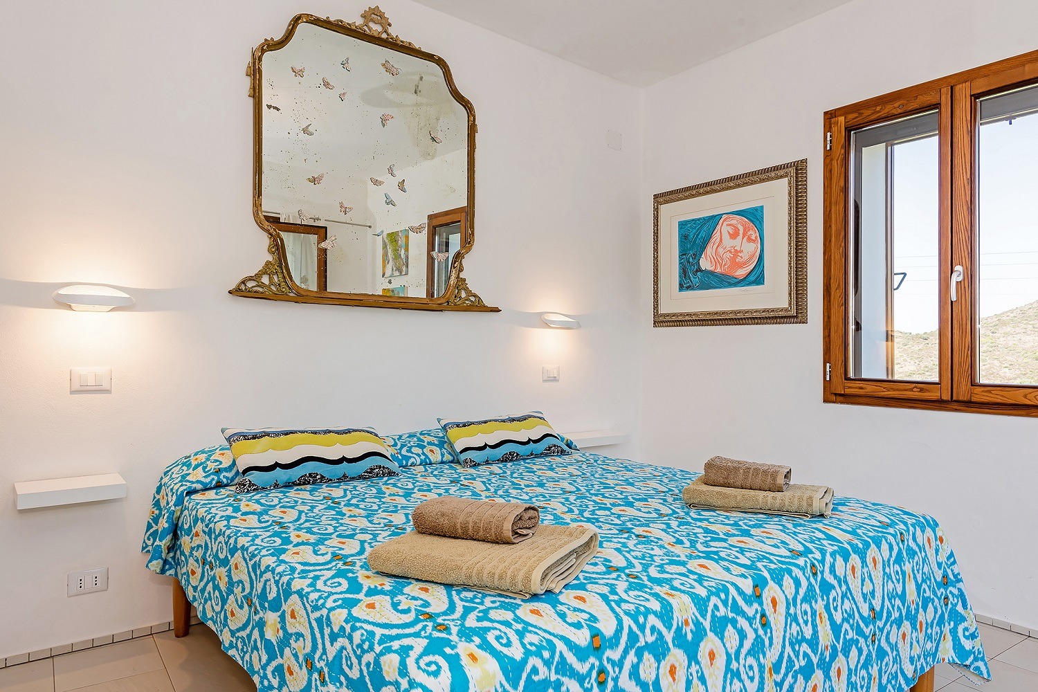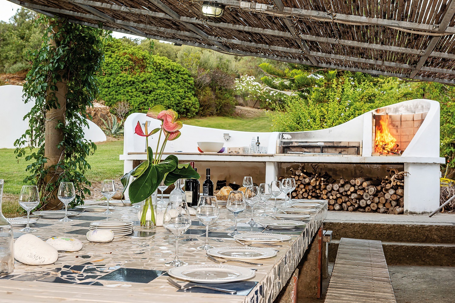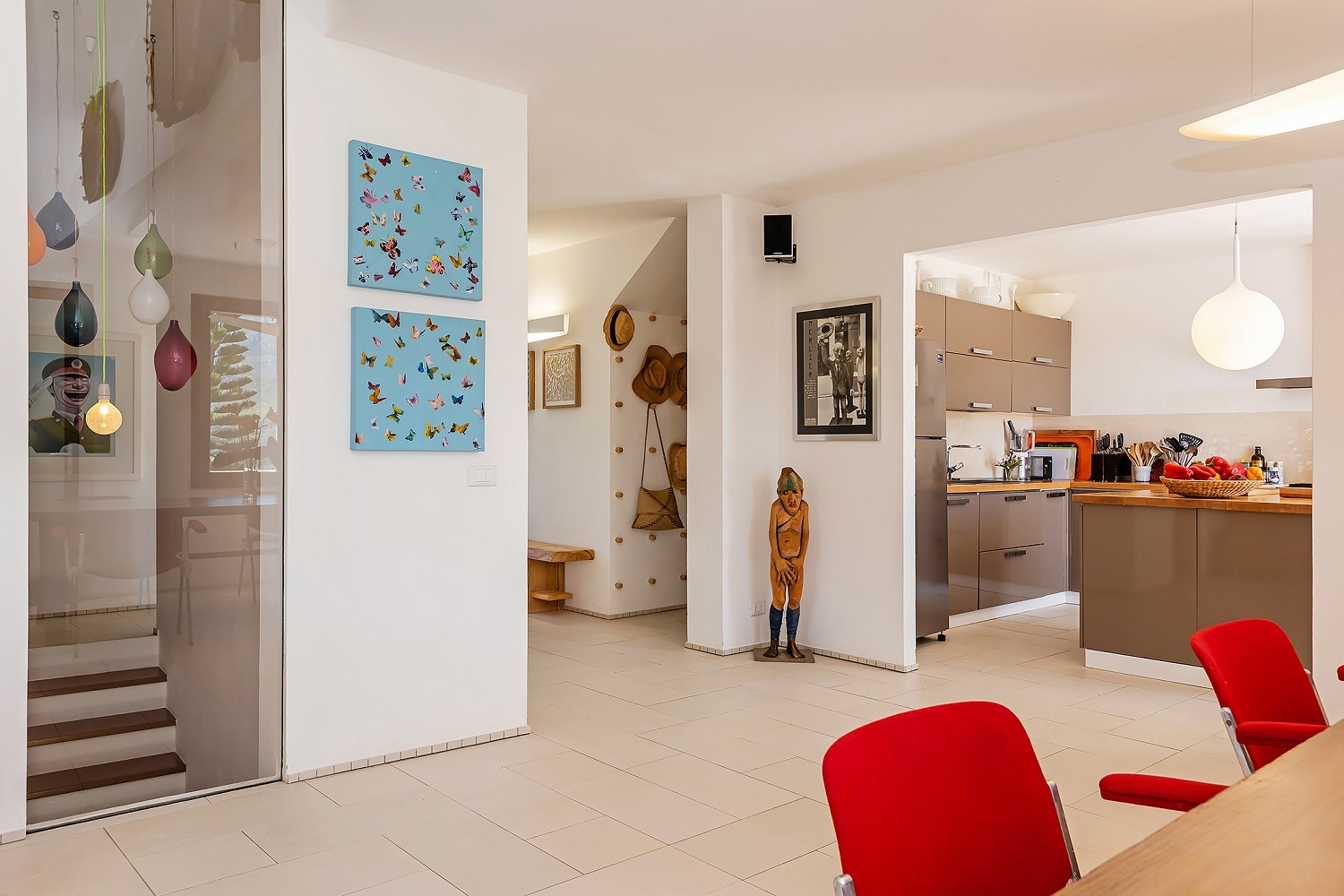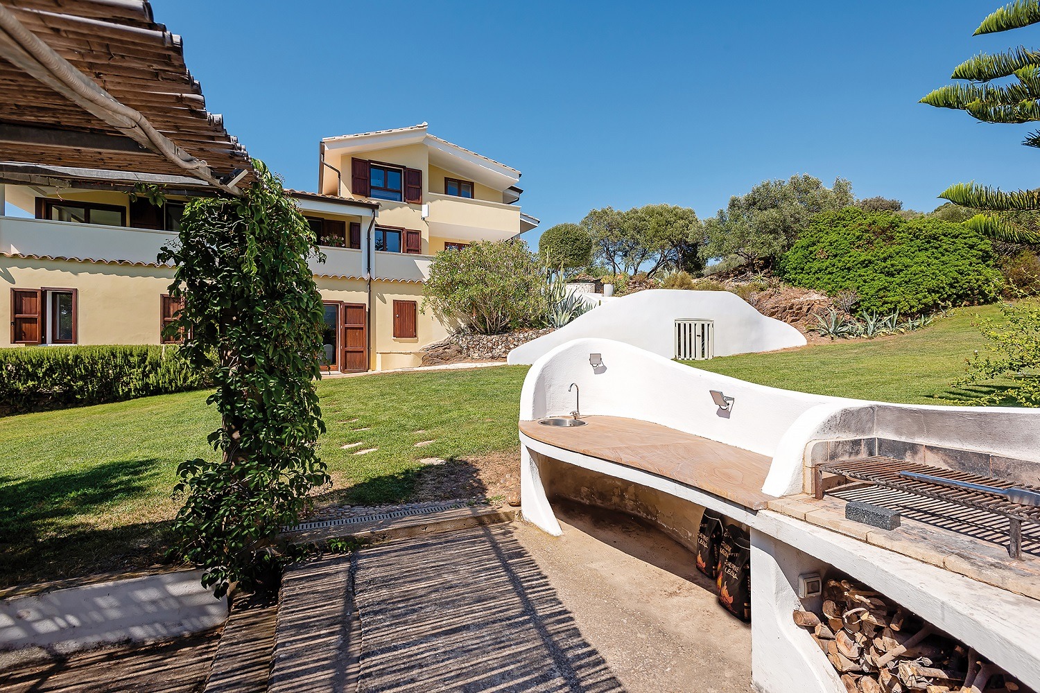 Willa Aurata to imponująca, wielopoziomowa willa położona pośród zielonych wzgórz Costa Verde, zaledwie 1,5 km od szerokiej, piaszczystej plaży Portixeddu. Idealne dla dużych rodzin lub grup przyjaciół. Wnętrze willi urządzone jest w stylu nieformalnej elegancji, tworząc przytulną i swobodną atmosferę. Główna część dzienna obejmuje przestronny salon z jadalnią oraz przeszkloną werandę z widokiem na morze i okoliczne wzgórza. Z salonu oraz kuchni prowadzą podwójne drzwi na taras, na którym znajduje się długi stół jadalny mogący pomieścić wszystkich gości. Kuchnia jest nowoczesna, w pełni wyposażona.