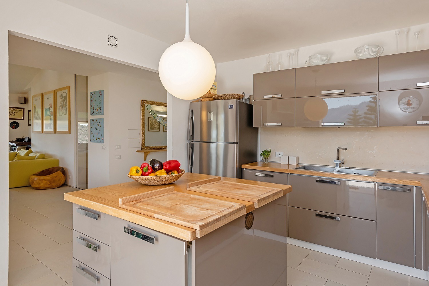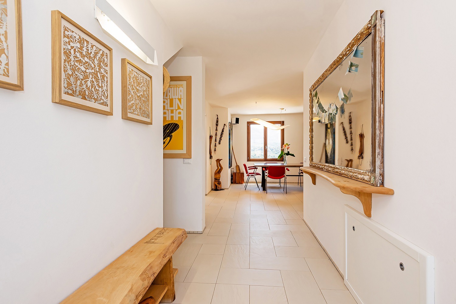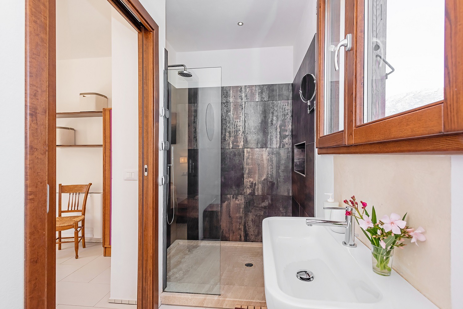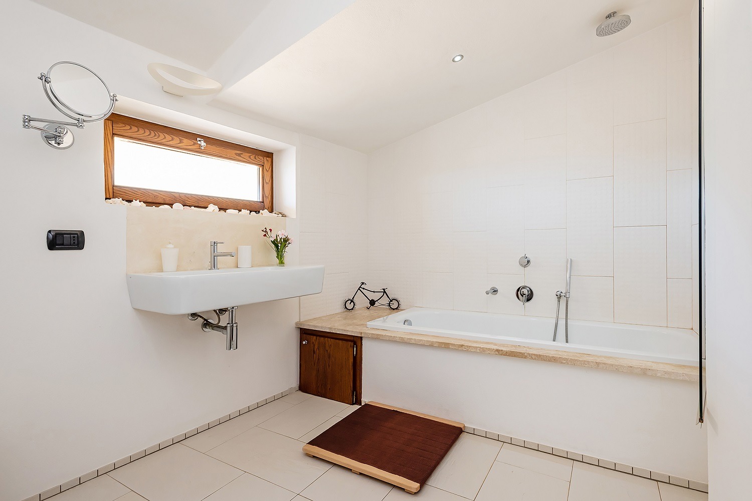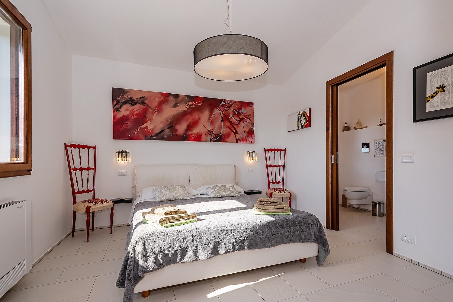 Willa Aurata to imponująca, wielopoziomowa willa położona pośród zielonych wzgórz Costa Verde, zaledwie 1,5 km od szerokiej, piaszczystej plaży Portixeddu. Idealne dla dużych rodzin lub grup przyjaciół. Wnętrze willi urządzone jest w stylu nieformalnej elegancji, tworząc przytulną i swobodną atmosferę. Główna część dzienna obejmuje przestronny salon z jadalnią oraz przeszkloną werandę z widokiem na morze i okoliczne wzgórza. Z salonu oraz kuchni prowadzą podwójne drzwi na taras, na którym znajduje się długi stół jadalny mogący pomieścić wszystkich gości. Kuchnia jest nowoczesna, w pełni wyposażona.