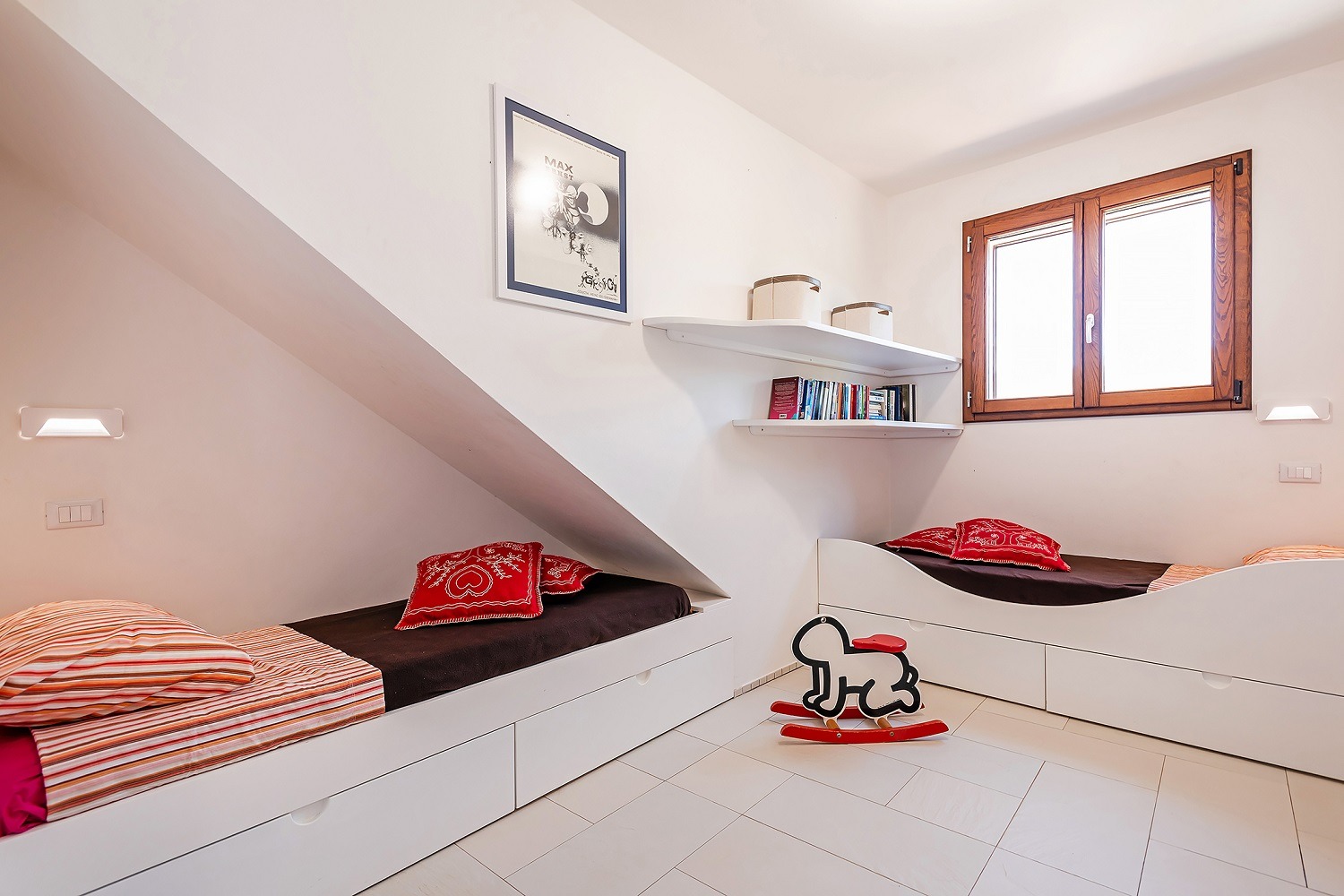 Willa obejmuje osiem dwuosobowych sypialni rozmieszczonych na trzech poziomach: cztery z łóżkami podwójnymi i cztery z łóżkami pojedynczymi. Wiele z nich posiada prywatne łazienki lub bezpośredni dostęp do tarasu czy ogrodu. Na najwyższym piętrze mieści się także czytelnia z balkonem, z którego można podziwiać panoramę morza. Dodatkowym atutem jest osobny pokój wypoczynkowy na dolnym poziomie, wyposażony w stół do ping-ponga, telewizor i system audio.