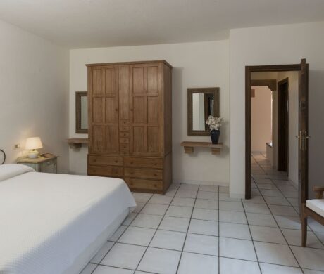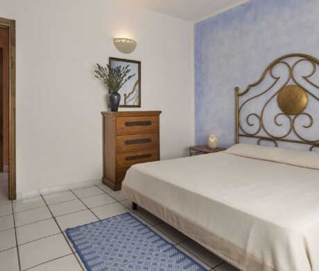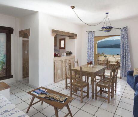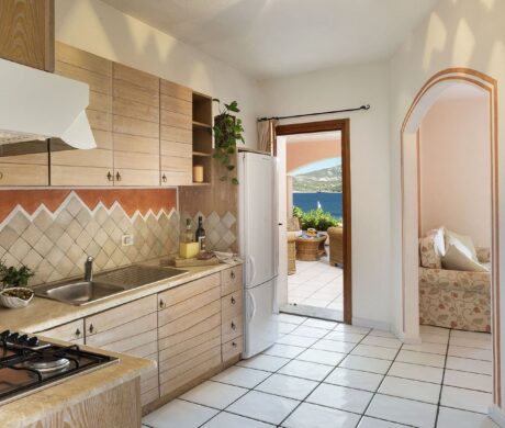 Wnętrze oferuje dwie sypialnie – jedna z podwójnym łóżkiem i prywatną łazienką, druga z dwoma łóżkami pojedynczymi (z możliwością ich połączenia), oraz drugą łazienką. Część dzienna obejmuje przestronną kuchnię połączoną z salonem, w którym znajdują się dwie rozkładane sofy pojedyncze lub jedna rozkładana sofa podwójna, idealne rozwiązanie dla piątej i szóstej osoby. W razie potrzeby można również wstawić łóżeczko dla dziecka do 23. miesiąca życia. Willa wyposażona jest w klimatyzację, telewizor, odtwarzacz DVD, wifi, a także w pełni funkcjonalną kuchnię z piekarnikiem, zmywarką i lodówką. Na zewnątrz czekają meble ogrodowe, które zachęcają do wypoczynku na świeżym powietrzu wśród śródziemnomorskiej zieleni.