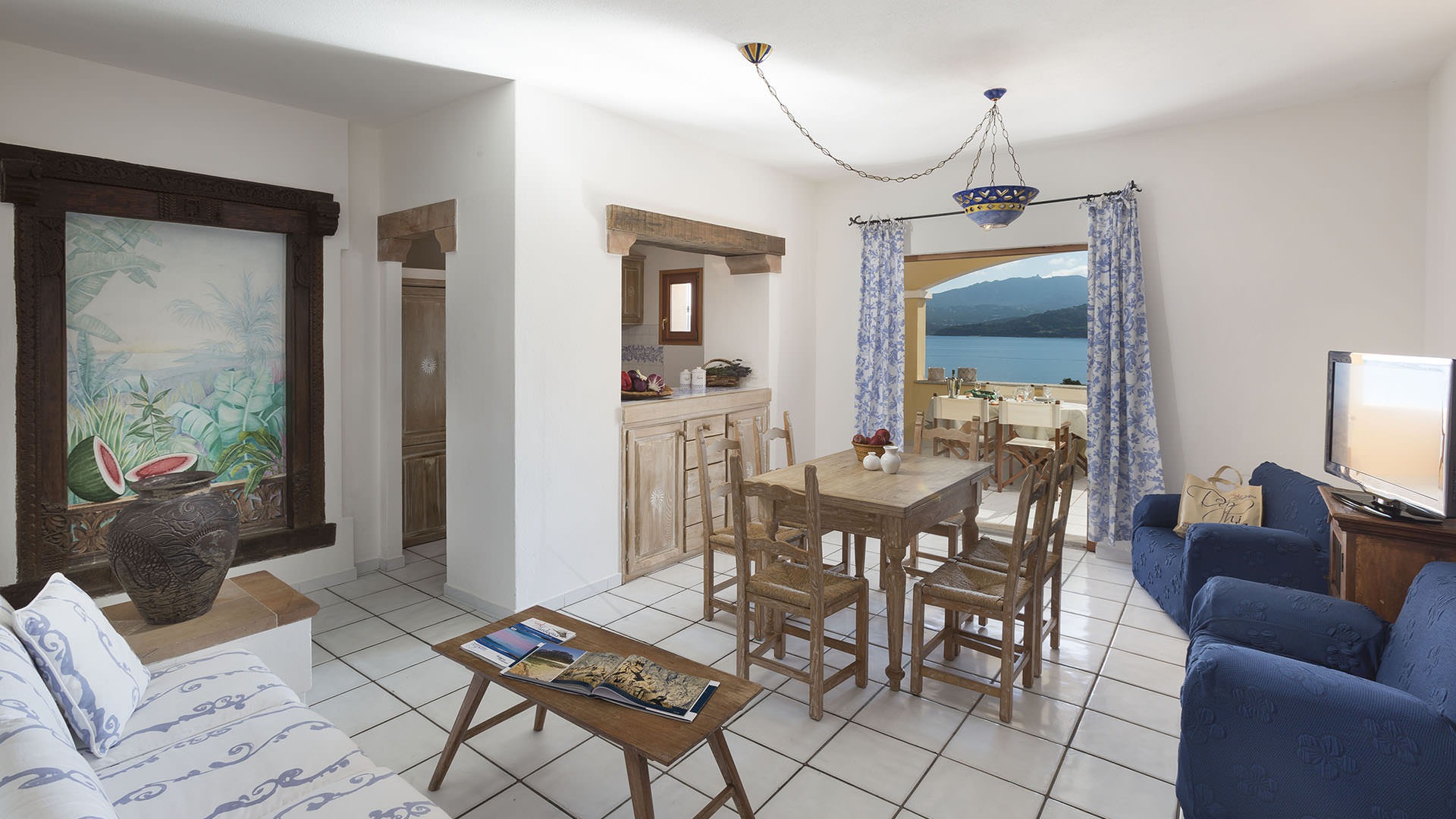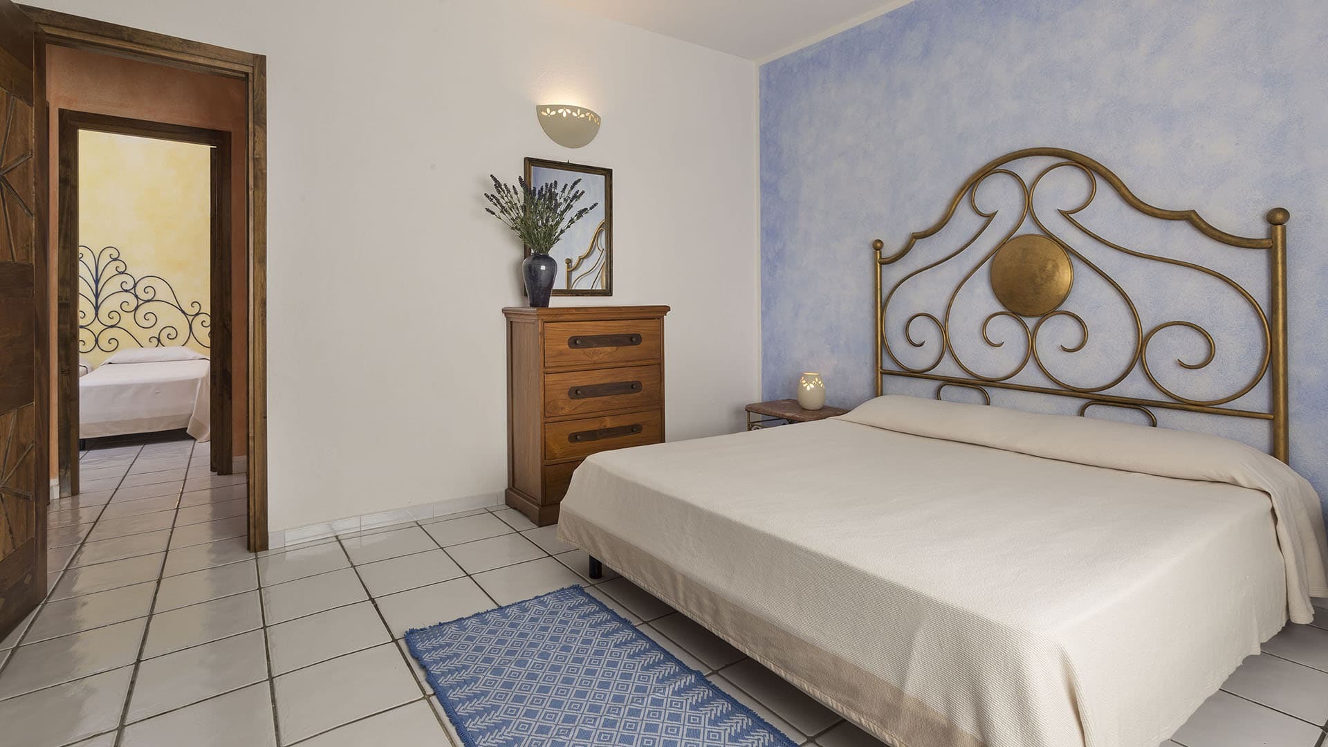 Wnętrze oferuje dwie sypialnie – jedna z podwójnym łóżkiem i prywatną łazienką, druga z dwoma łóżkami pojedynczymi (z możliwością ich połączenia), oraz drugą łazienką. Część dzienna obejmuje przestronną kuchnię połączoną z salonem, w którym znajdują się dwie rozkładane sofy pojedyncze lub jedna rozkładana sofa podwójna, idealne rozwiązanie dla piątej i szóstej osoby. W razie potrzeby można również wstawić łóżeczko dla dziecka do 23. miesiąca życia. Willa wyposażona jest w klimatyzację, telewizor, odtwarzacz DVD, wifi, a także w pełni funkcjonalną kuchnię z piekarnikiem, zmywarką i lodówką. Na zewnątrz czekają meble ogrodowe, które zachęcają do wypoczynku na świeżym powietrzu wśród śródziemnomorskiej zieleni.