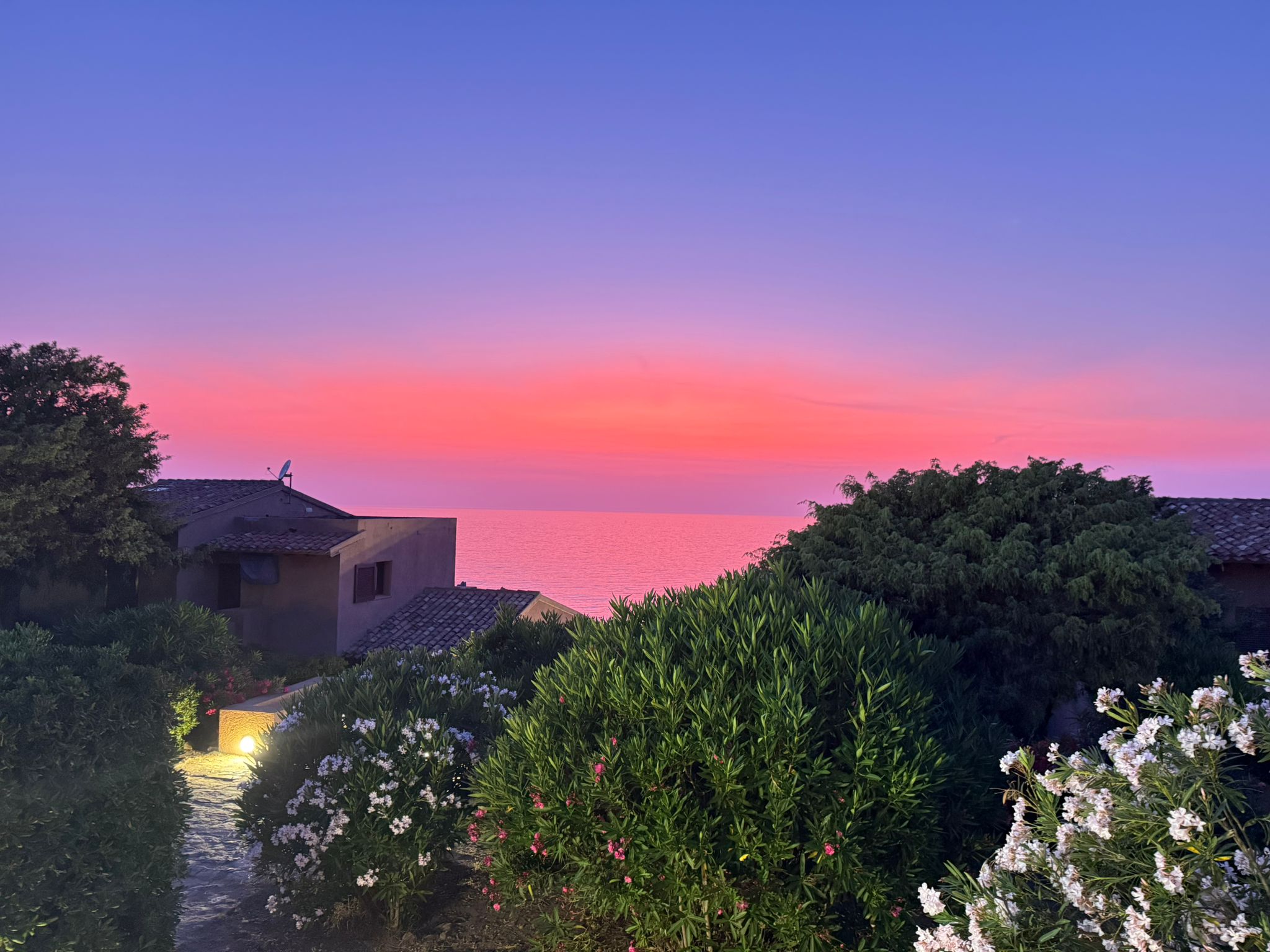 Na zadaszonej werandzie czekają wygodne fotele, sofa i duży stół jadalniany na 8 osób – idealne miejsce na wspólne posiłki. Prywatny basen ze strefą solarium jest naturalnym przedłużeniem strefy relaksu, a panoramiczny widok na morze i wyspę Korsykę na horyzoncie zapiera dech w piersiach. Zachody słońca są tu wyjątkowo piękne! Na posesji znajduje się także grill, leżaki plażowe oraz miejsce parkingowe.