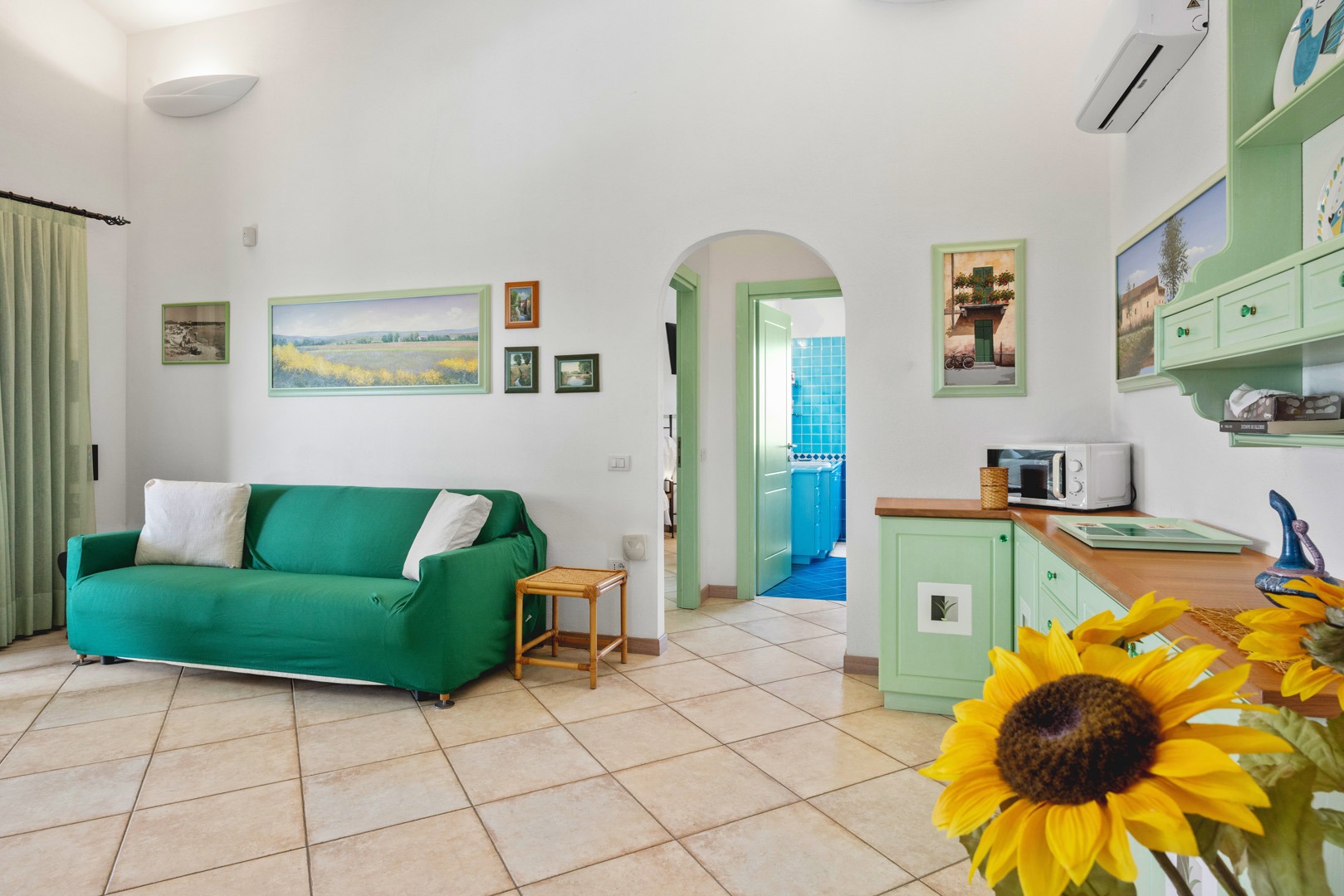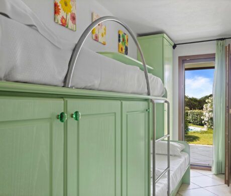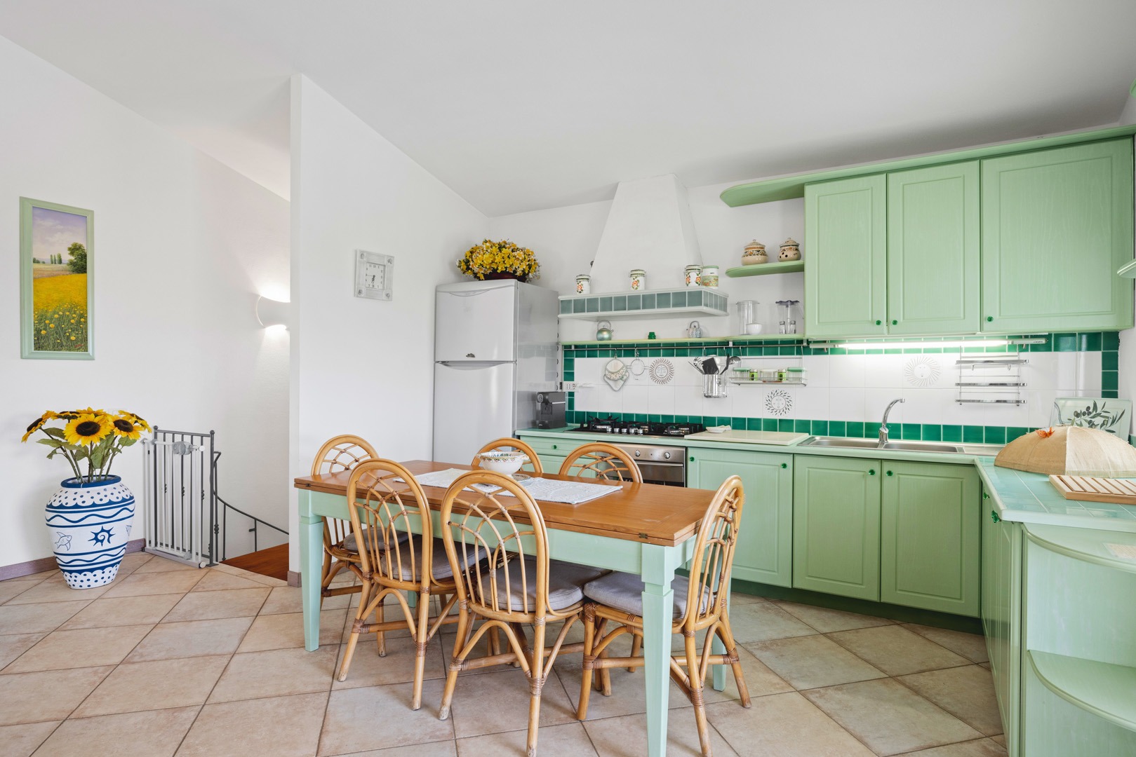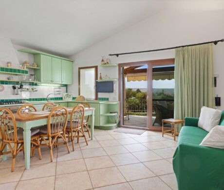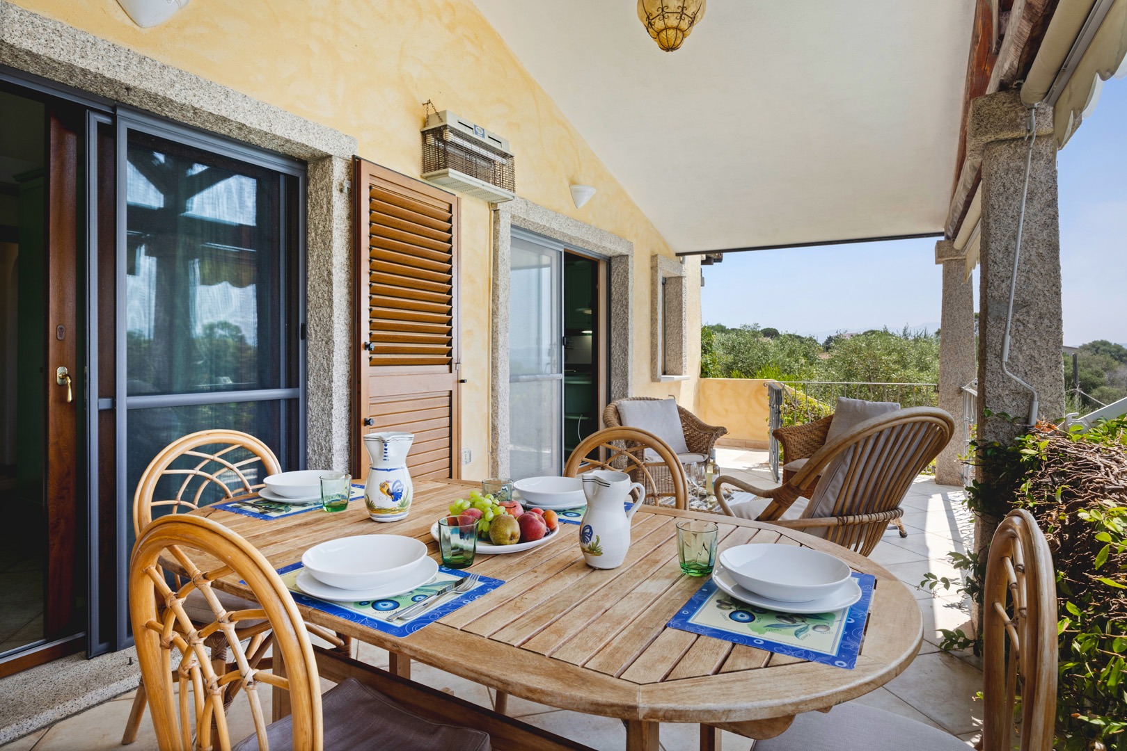 Rozłożona na dwóch poziomach, z niezależnym wejściem i charakterystycznymi schodami spiralnymi, zapewnia wygodę oraz swobodę użytkowania dla większej liczby gości. Główna część dzienna znajduje się na piętrze i stanowi serce domu, to tutaj znajdziecie jasny salon z wyjściem na dużą werandę, z której rozciąga się widok na morze i pobliską plażę.Kuchnia z jadalnią została zaprojektowana w nowoczesnym stylu i w pełni wyposażona, a jej duże przeszklenia pozwalają cieszyć się widokiem na wyspę Tavolara. Na tym poziomie znajduje się również jedna z sypialni oraz łazienka.