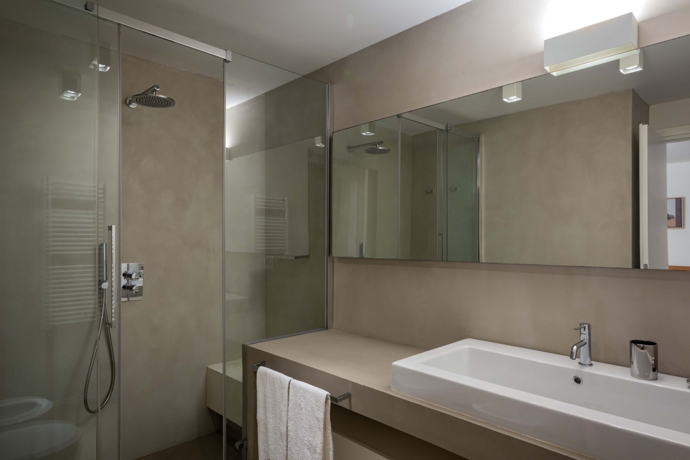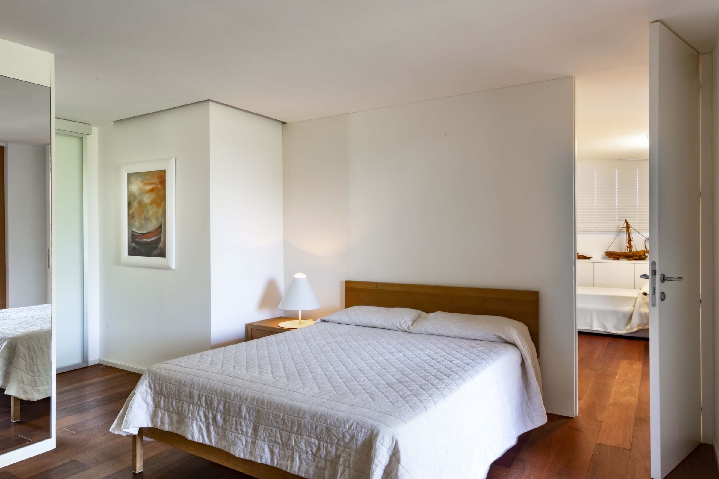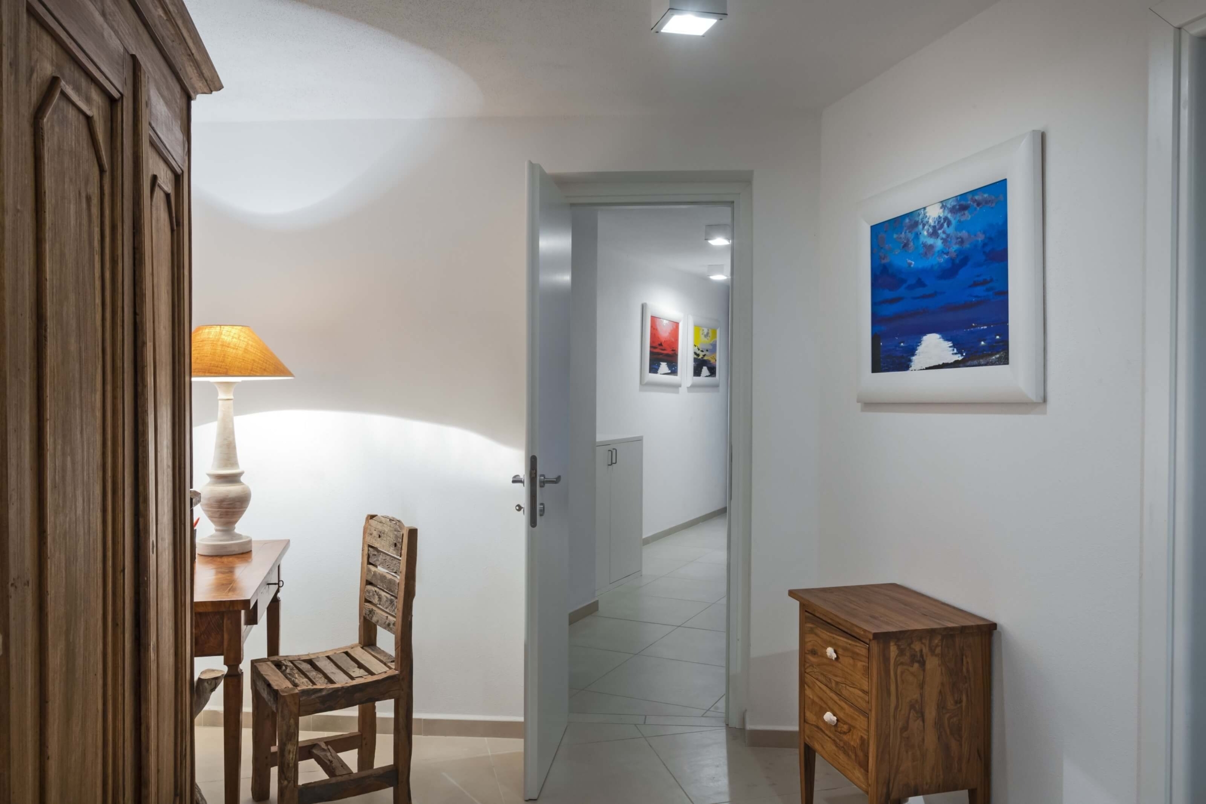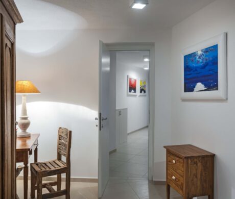 Do nizszego poziomu wchodzi się z zewnątrz. Dolna część składa się z trzech sypialni z dużymi łóżkami małżeńskimi oraz jednej z dwoma łóżkami pojedynczymi. Do dyzpozycji są cztery łazienki oraz dodatkowa toaleta, osobna pralnia. Każdy pokój willi wyposażony jest w klimatyzację. Zarówno na parterze, jak i w piwnicy podłoga wyłożona jest parkietem.