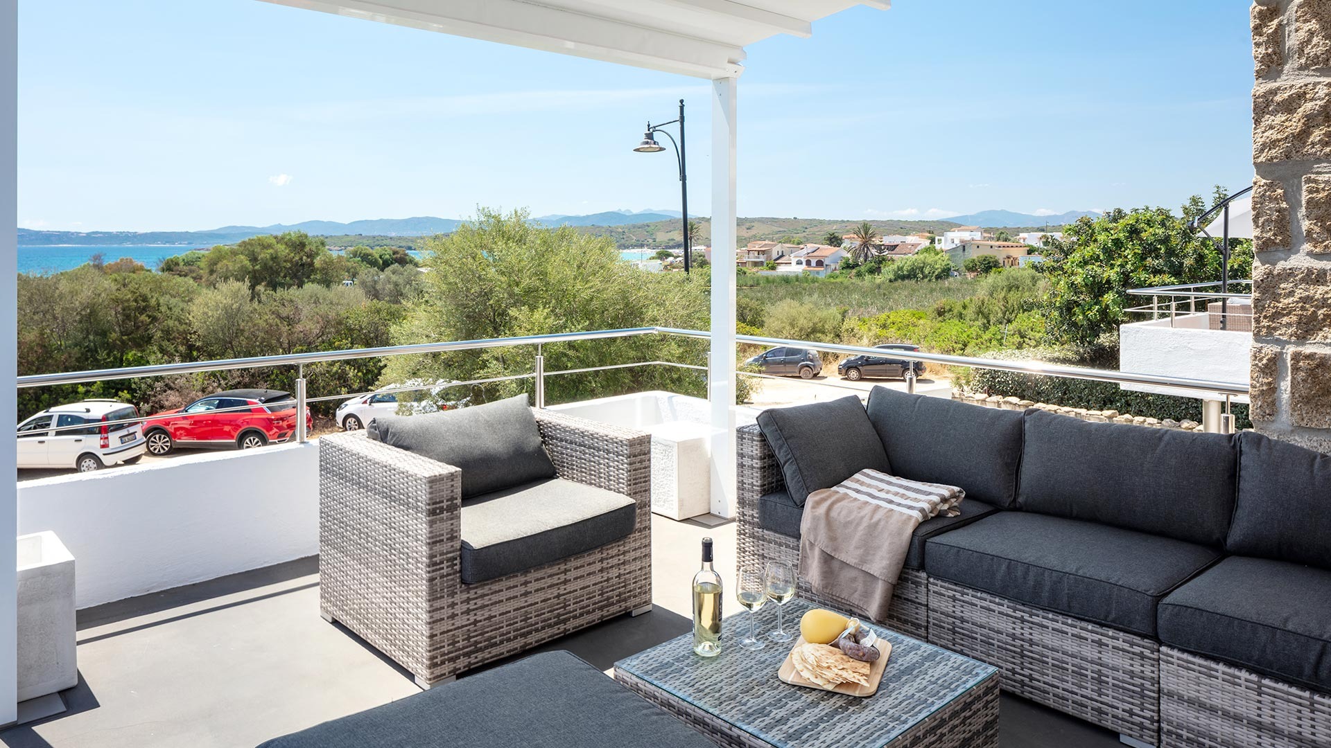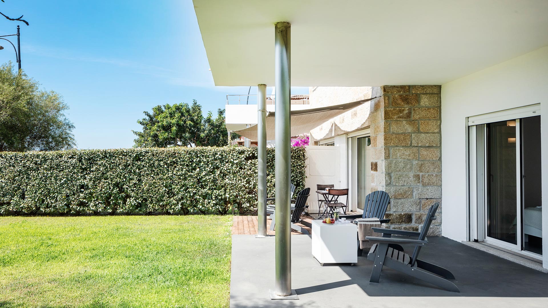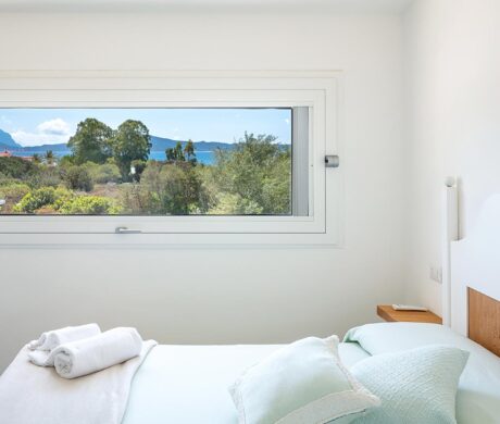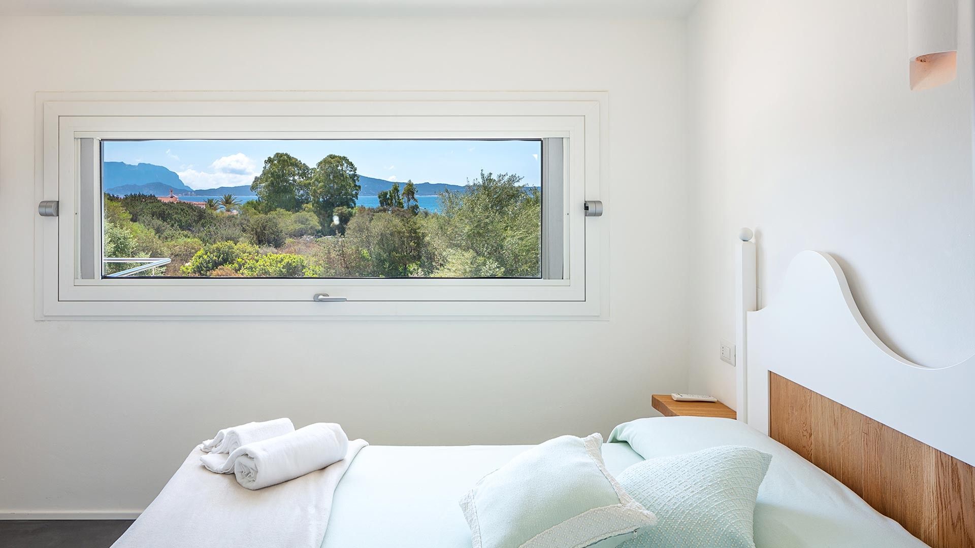 Willa oferuje trzy komfortowe sypialnie dwuosobowe, każda z prywatną łazienką. Każda z nich została zaprojektowana w unikalnym stylu. Dwie sypialnie znajdują się na parterze i mają bezpośrednie wyjście do ogrodu, natomiast jedna, na piętrze, oferuje spektakularny widok na morze i wyspę Tavolara. Na zewnątrz goście mogą korzystać z prywatnego ogrodu z zadbanym trawnikiem oraz śródziemnomorską roślinnością, taką jak oliwki i lentyski. W cieniu drzew znajdują się przytulne strefy relaksu, idealne na spokojny wypoczynek lub wspólne chwile z rodziną i przyjaciółmi.
