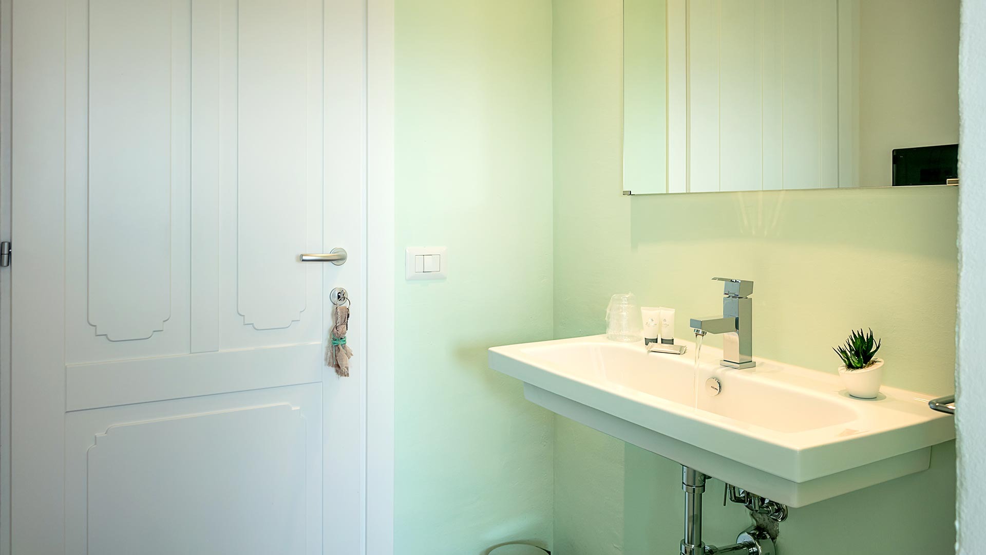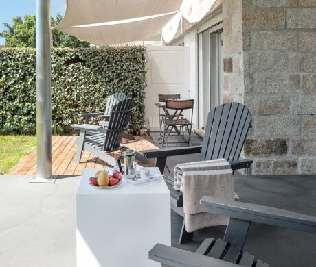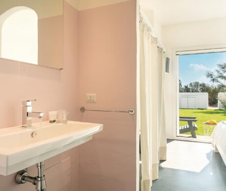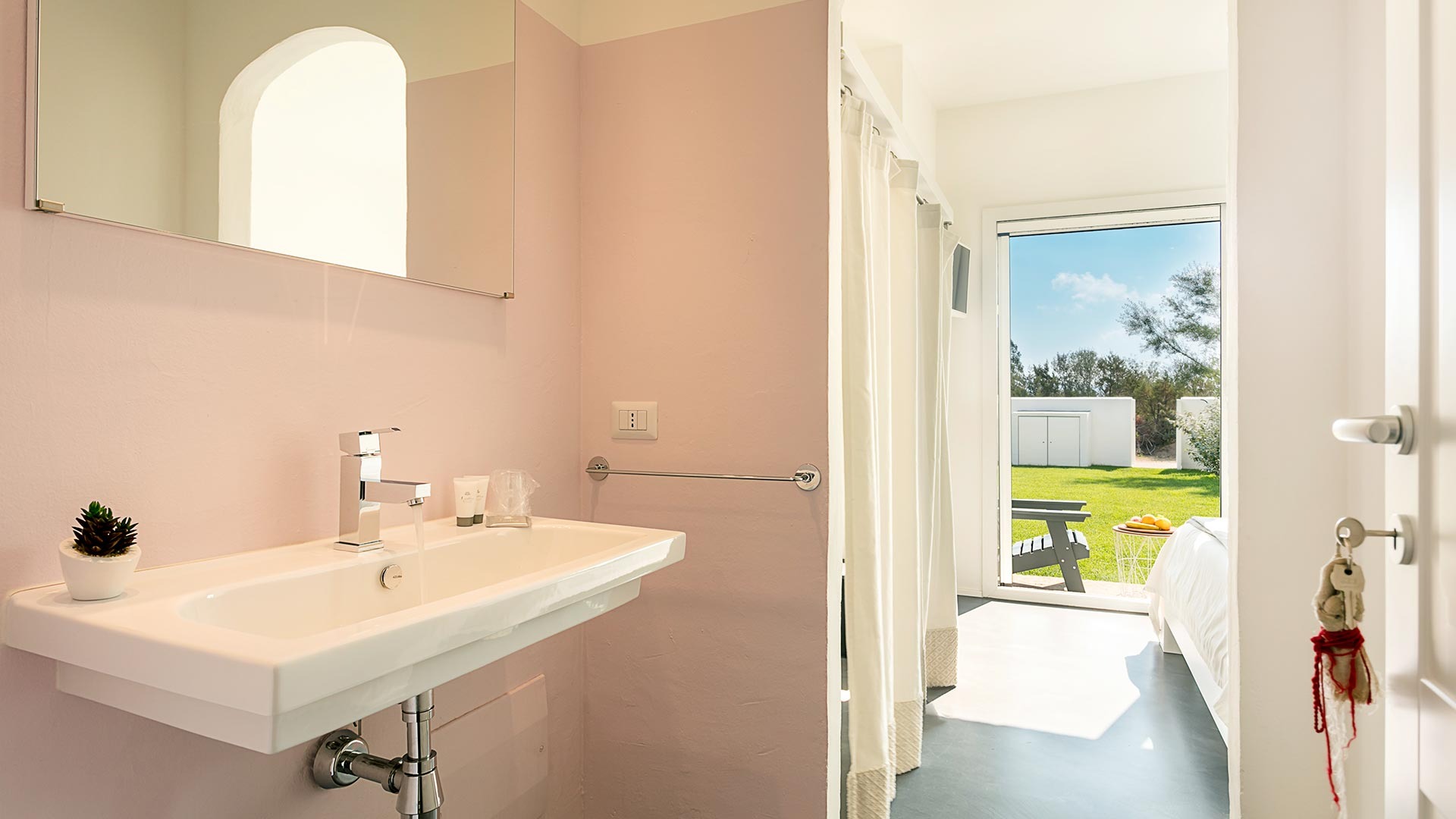 Willa oferuje trzy komfortowe sypialnie dwuosobowe, każda z prywatną łazienką. Każda z nich została zaprojektowana w unikalnym stylu. Dwie sypialnie znajdują się na parterze i mają bezpośrednie wyjście do ogrodu, natomiast jedna, na piętrze, oferuje spektakularny widok na morze i wyspę Tavolara. Na zewnątrz goście mogą korzystać z prywatnego ogrodu z zadbanym trawnikiem oraz śródziemnomorską roślinnością, taką jak oliwki i lentyski. W cieniu drzew znajdują się przytulne strefy relaksu, idealne na spokojny wypoczynek lub wspólne chwile z rodziną i przyjaciółmi.