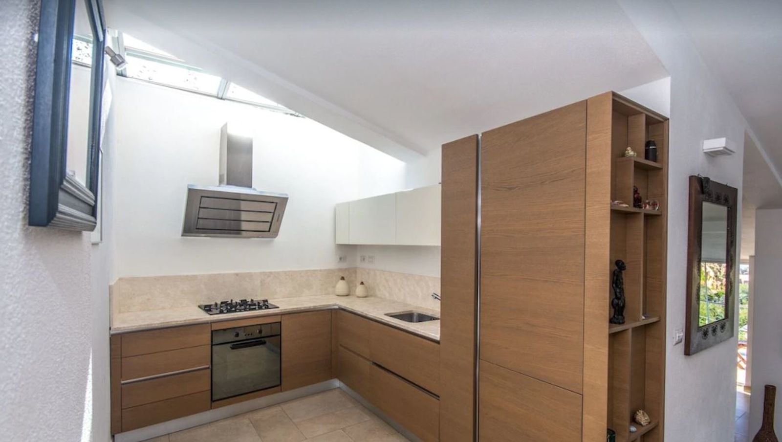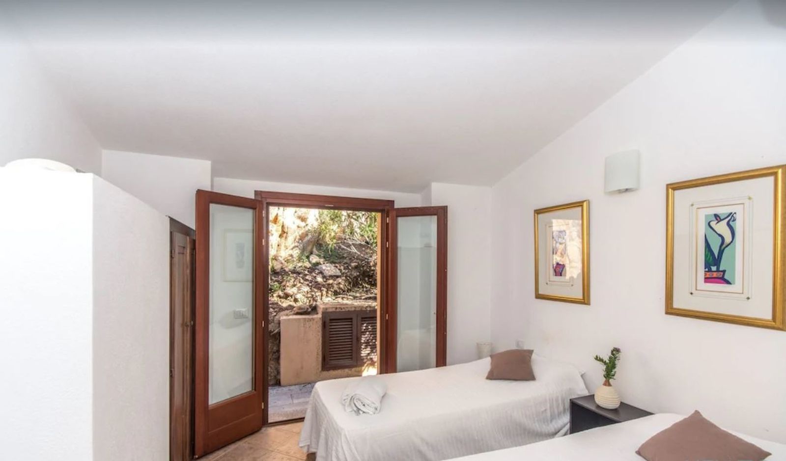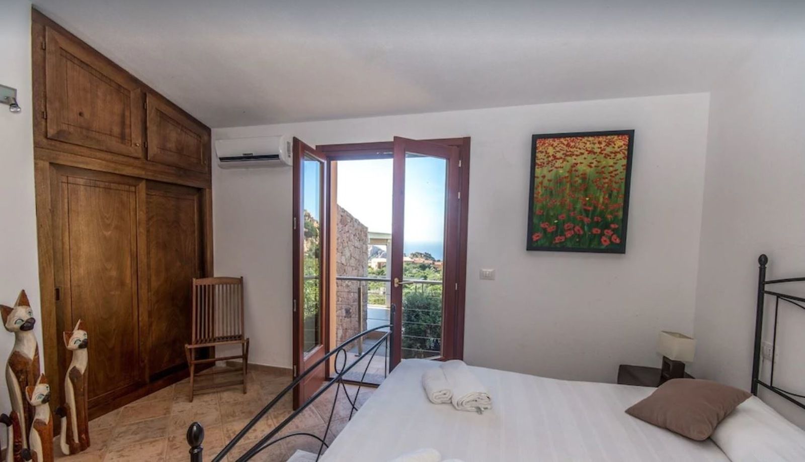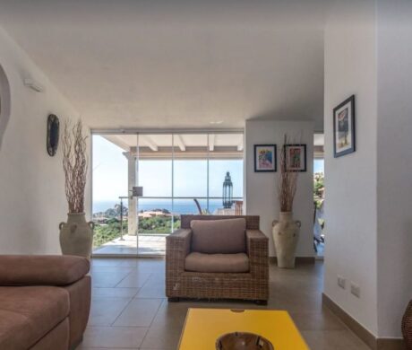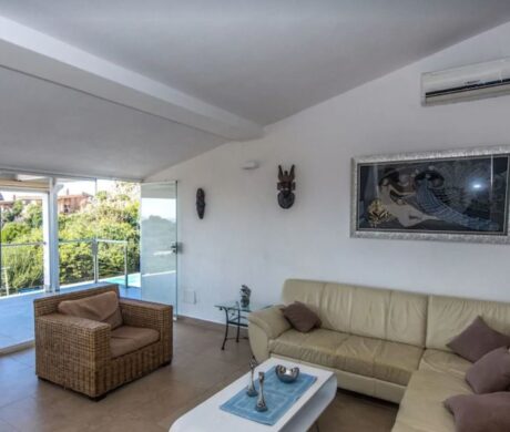 Dostępne są 4 sypialnie, 3 dwuosobowe i 1 pokój typu twin, z których trzy mają dostęp do tarasów z widokiem na morze, a także trzy łazienki, w tym dwie prywatne. Nowa kuchnia jest dobrze wyposażona, posiada zmywarkę, płytę gazową, piekarnik elektryczny, ekspres do kawy i naczynia. Istnieje również część gospodarcza z pralką. Obok kuchni znajduje się duża jadalnia, która jest podniesiona, aby cieszyć się piękną bujną zielenią i widokiem na morze z dużych, składanych szklanych drzwi w salonie.