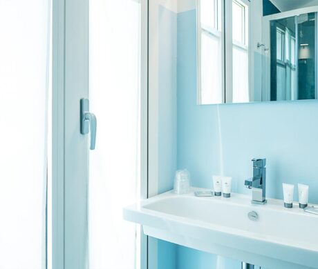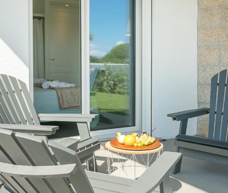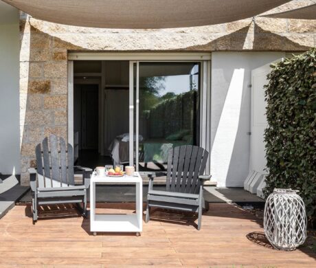 Na parterze mieszczą się dwie komfortowe sypialnie dwuosobowe, urządzone z dbałością o detale. Na poziomie dolnym znajduje się dodatkowa, przestronna sypialnia trzyosobowa z prywatną łazienką. Willa oferuje łącznie trzy łazienki z dużymi prysznicami, wysokiej jakości pościel, nowoczesne materace typu memory oraz pełne wyposażenie niezbędne do dłuższego pobytu, w tym pralkę, sprzęty kuchenne i szybkie Wi-Fi. Na zewnątrz goście mają do dyspozycji prywatny ogród z zadbanym trawnikiem oraz śródziemnomorską roślinnością. Znajdują się tu również przyjemne strefy relaksu w cieniu drzew.