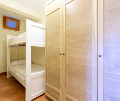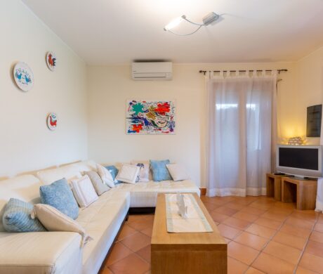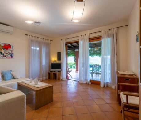 Ta przytulna willa to idealne miejsce na wakacje w otoczeniu natury. Wnętrze obejmuje przestronny salon połączony z jadalnią, z którego rozciąga się widok na basen i ogród. Z salonu można wyjść bezpośrednio na dużą, osłoniętą werandę biegnącą wzdłuż całego budynku. Kuchnia jest niewielka, ale dobrze wyposażona i funkcjonalna. W willi znajdują się trzy sypialnie – jedna z łóżkiem podwójnym i prywatnym tarasem z wyjściem do ogrodu, druga z dwoma pojedynczymi łóżkami, które można połączyć, oraz trzecia, mniejsza, z praktycznymi łóżkami piętrowymi. Goście mają do dyspozycji dwie łazienki: jedną z wanną i drugą z prysznicem.