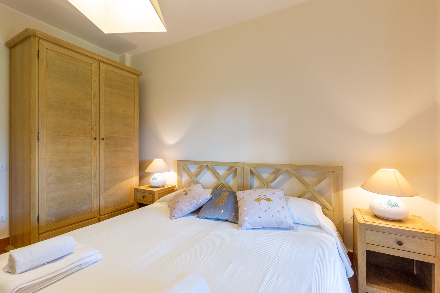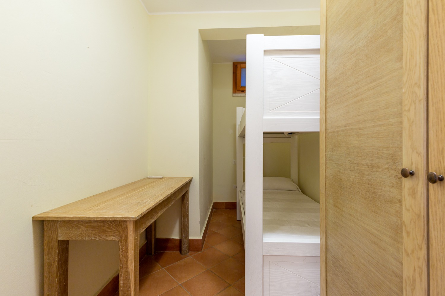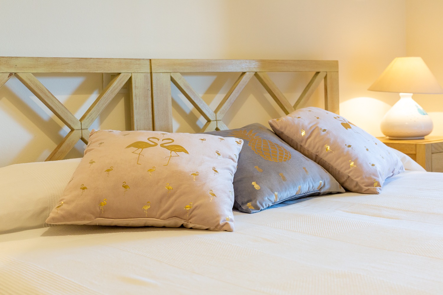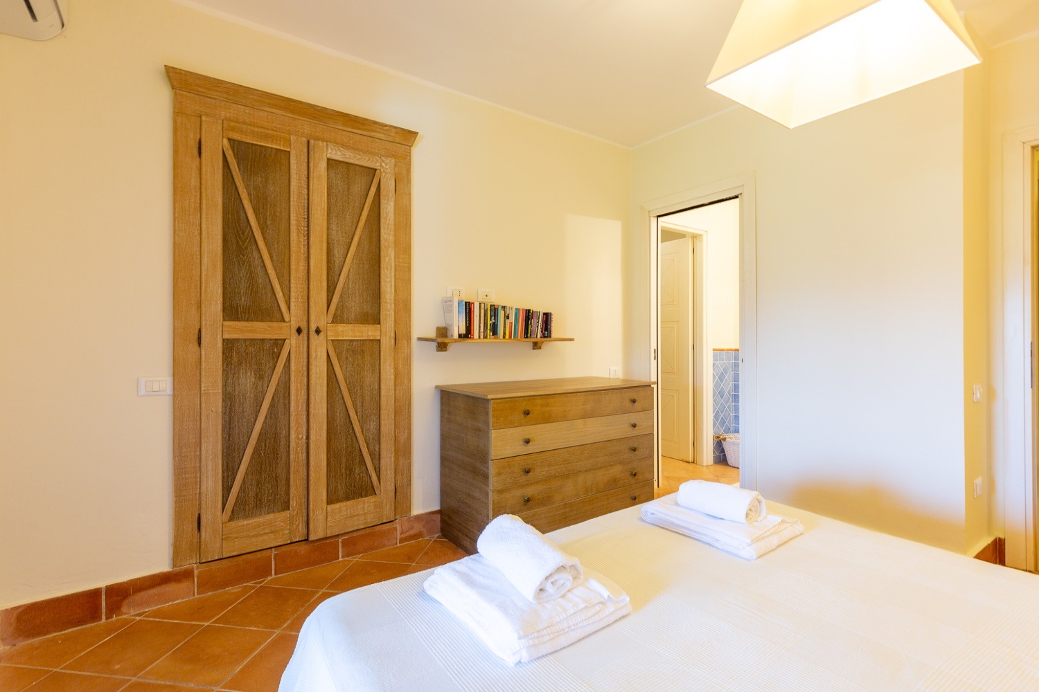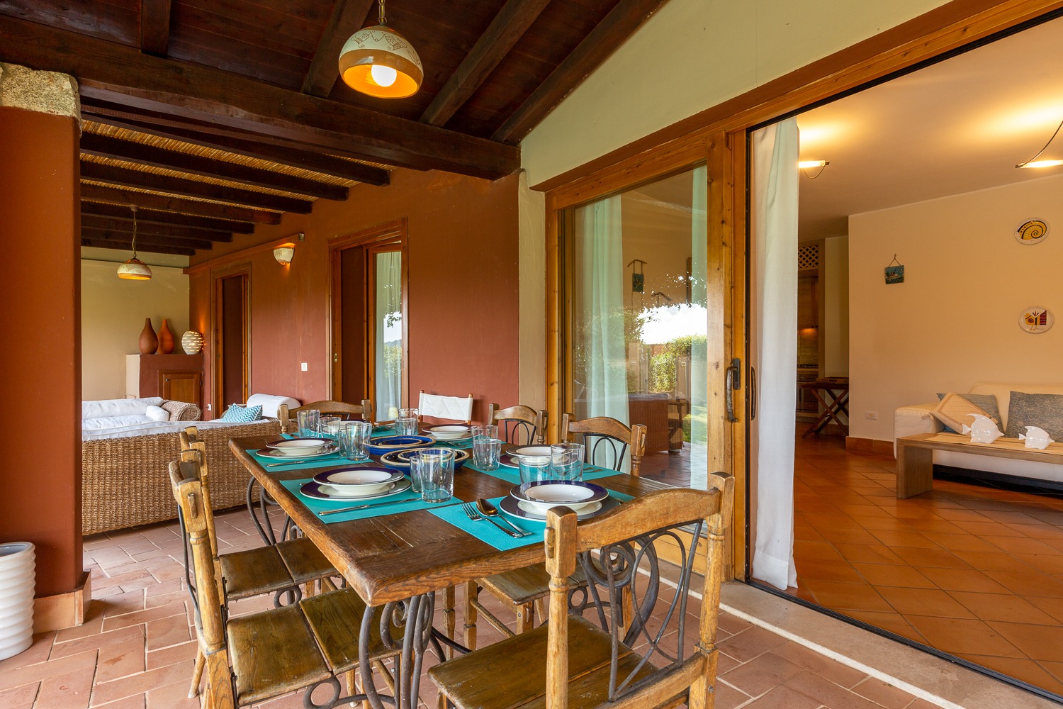 Ta przytulna willa to idealne miejsce na wakacje w otoczeniu natury. Wnętrze obejmuje przestronny salon połączony z jadalnią, z którego rozciąga się widok na basen i ogród. Z salonu można wyjść bezpośrednio na dużą, osłoniętą werandę biegnącą wzdłuż całego budynku. Kuchnia jest niewielka, ale dobrze wyposażona i funkcjonalna. W willi znajdują się trzy sypialnie – jedna z łóżkiem podwójnym i prywatnym tarasem z wyjściem do ogrodu, druga z dwoma pojedynczymi łóżkami, które można połączyć, oraz trzecia, mniejsza, z praktycznymi łóżkami piętrowymi. Goście mają do dyspozycji dwie łazienki: jedną z wanną i drugą z prysznicem.