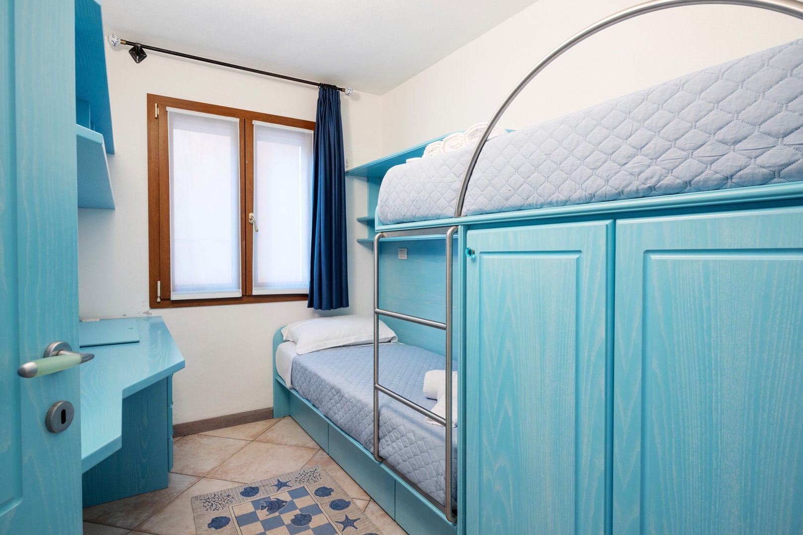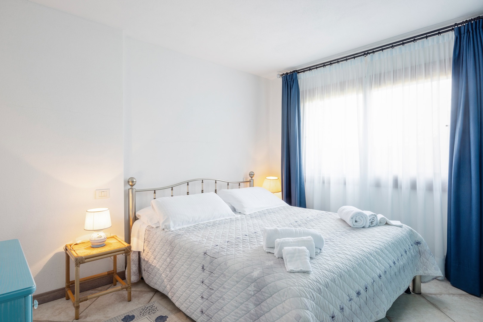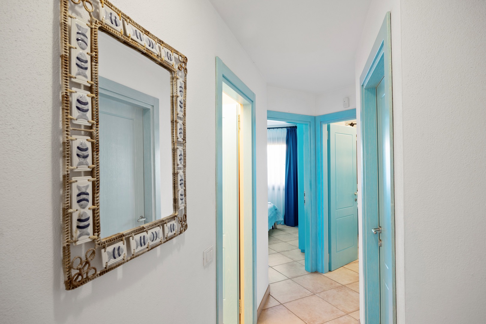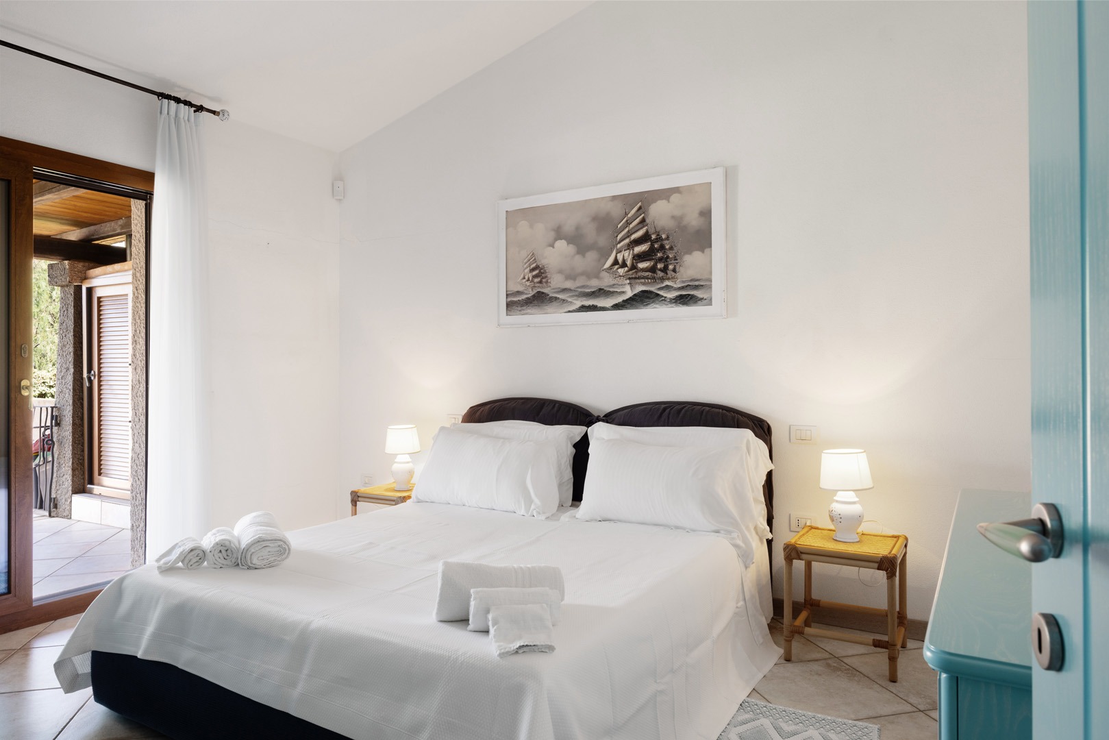 Na parterze znajdują się dwie komfortowe sypialnie dwuosobowe oraz dodatkowy pokój z dwoma łóżkami pojedynczymi. Wszystkie wnętrza zostały urządzone z wykorzystaniem ręcznie wykonanych elementów oraz tkanin inspirowanych kolorami morza i natury Sardynii. Do dyspozycji gości jest także druga łazienka. Na zewnątrz znajduje się rozległy, zadbany ogród z trawnikiem i śródziemnomorską roślinnością, który tworzy przyjemną przestrzeń do wypoczynku. Największą atrakcją jest duży basen typu infinity z częścią hydromasażu, wspólny dla dwóch bliźniaczych willi.